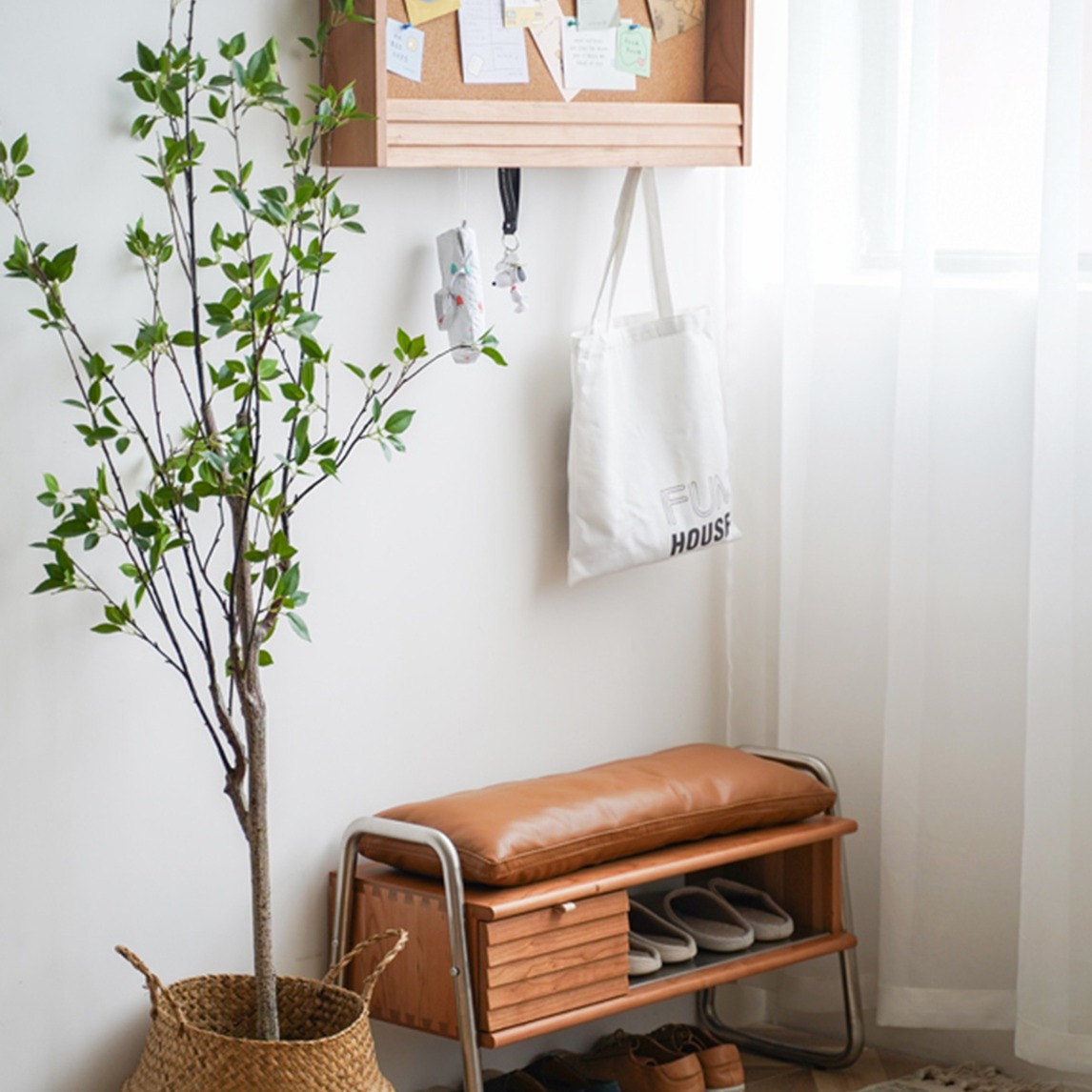 玄关面积有限,那么就需要尽可能的利用每一寸空间。一物多用的收纳换鞋凳,可以增添储物能力,让空间更加整洁。