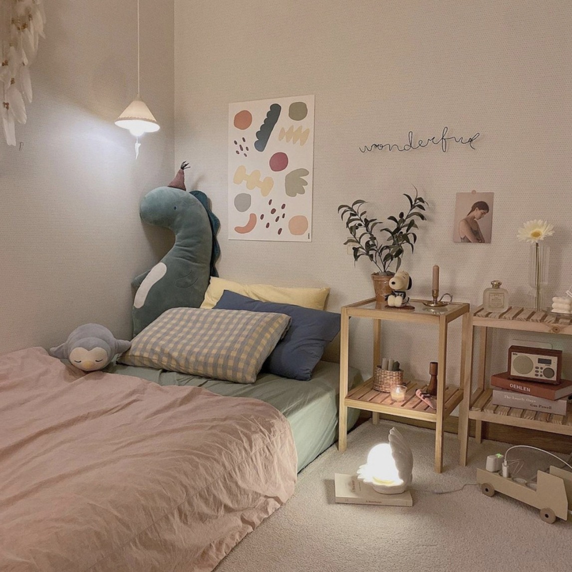 小空间也可以睡超级大床,箱体床收纳储物好帮手,小房间专属,实木花架改装成床头柜,省钱还好看,网红贝壳灯增添浪漫气息。
