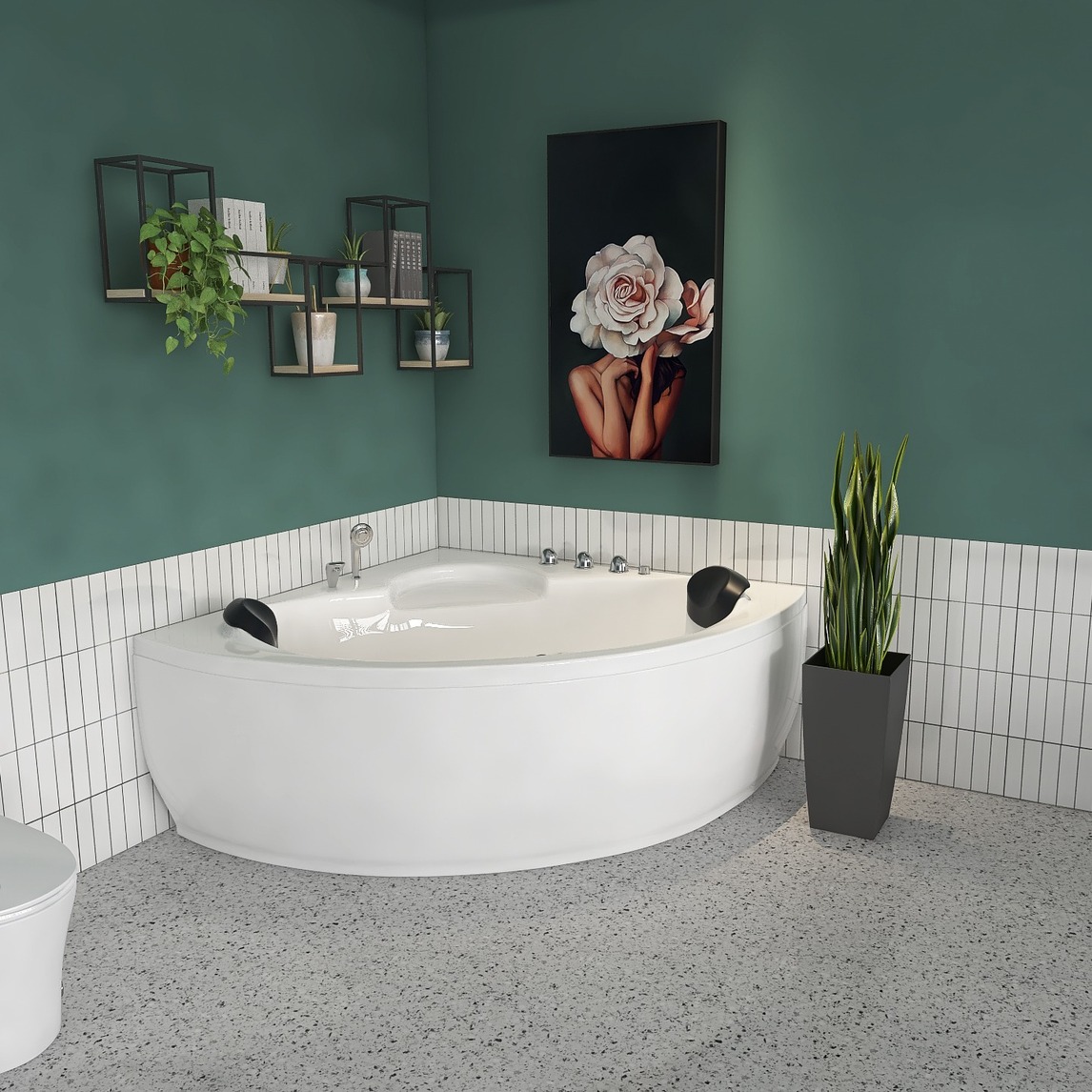必不可少的简约干净的搭配,白色和跳色的完美搭配,搭上流行的绿植和装饰画,干净整洁的环境,简简单单就实现卫生间的打造。喜欢这种风格的朋友不可错过哦。