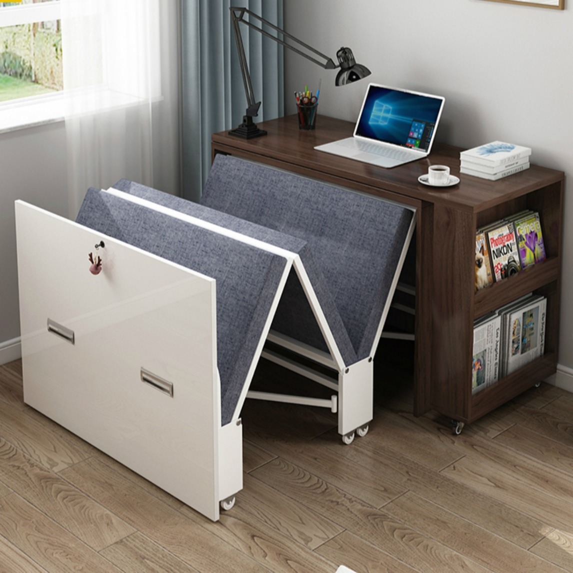 书桌折叠床,平时作为书桌使用,宽大的桌面放办公用品、电脑等毫无压力,来客人留宿时轻轻一拉,就变成了一张单人床,遇到客人来留宿再也不尴尬~