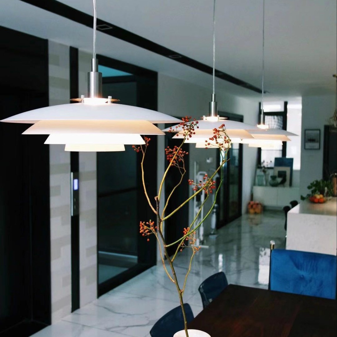 这混搭风的餐厅超气质,几盏吊灯分外个性简约,再加上中式的花瓶加入以及一支蔷薇果就轻松搞定啦,你喜欢吗?