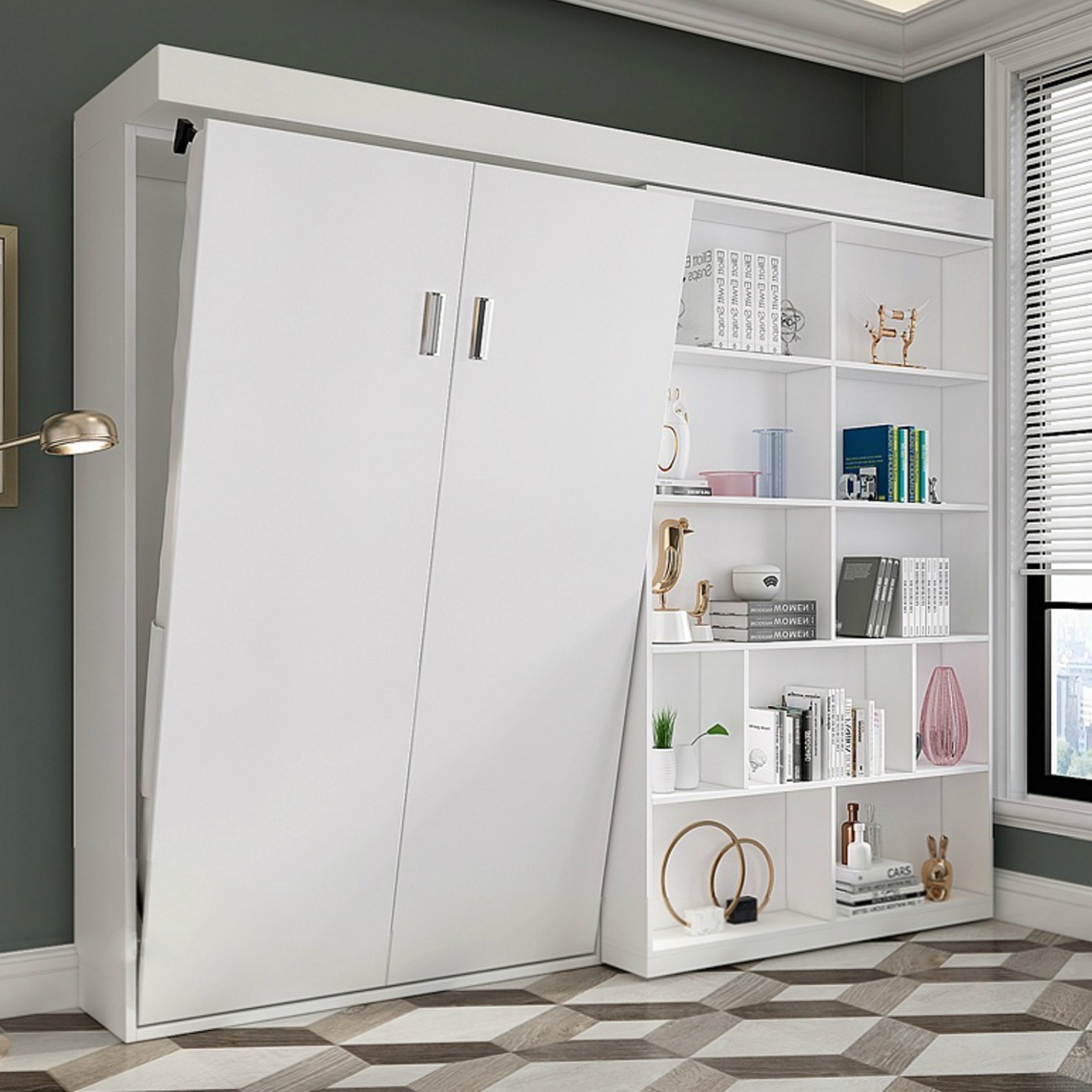 平时外观如同书柜,睡觉时将柜门翻下,就是一张标准的席梦思,此外它还自带书桌,工作休息两不误,小户型扩容神器,带液压助力,轻轻一翻,一房变两房,亲友留宿不尴尬~