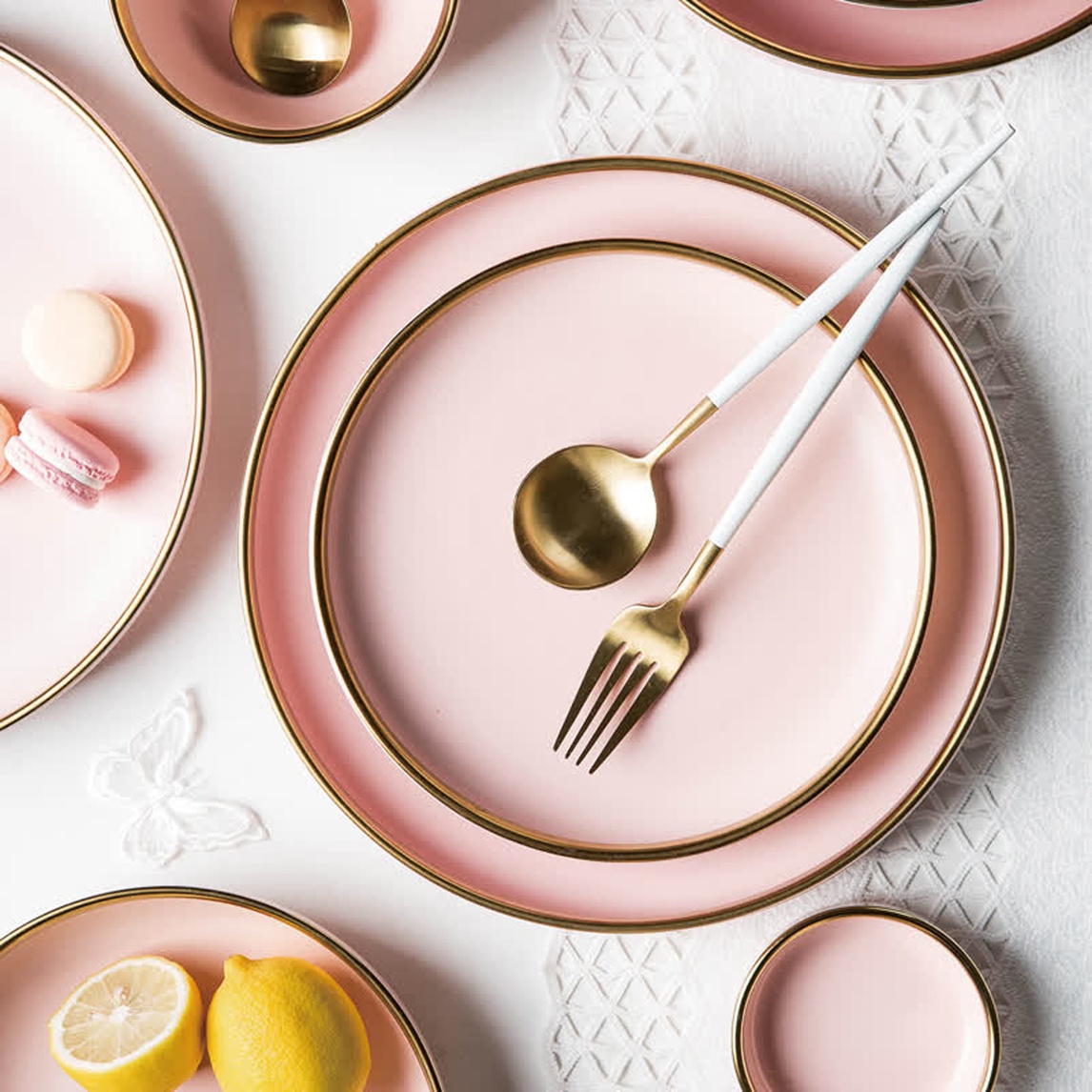 充满现代风格的一款陶瓷盘子,采用哑光蓝色的样式,既清新淡雅又更具低调的高级感。同时,在边缘加入金色的装饰,增添华丽的靓丽的感,以及精致的格调。而平整的盘底样式,搭配上圆润的转角和加高边缘,则带来多功能...展开