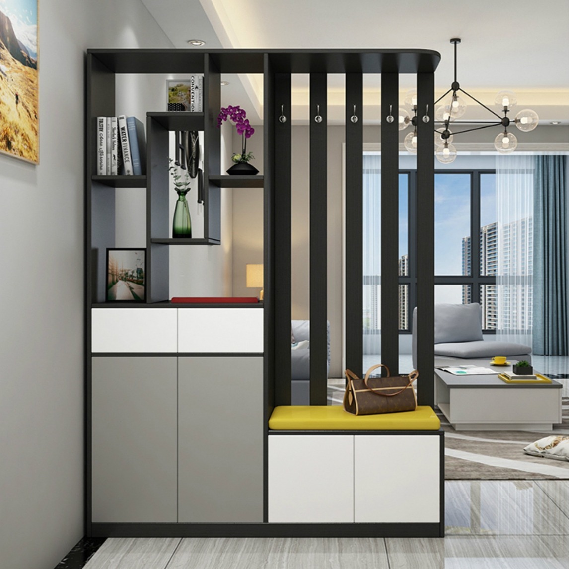 现在北欧风的门厅,简单利落中看上去就很大气,门口一定要装一个玄关柜,这样入门就不会直接看见客厅,舒适感加分。