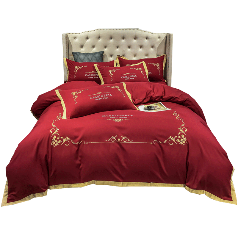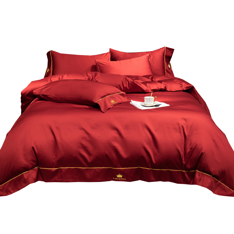 亮丽的纯色调四件套,表面带有刺绣的图案,给这款床上四件套带来了些许亮点,清爽之余也不会显得过于单调乏味