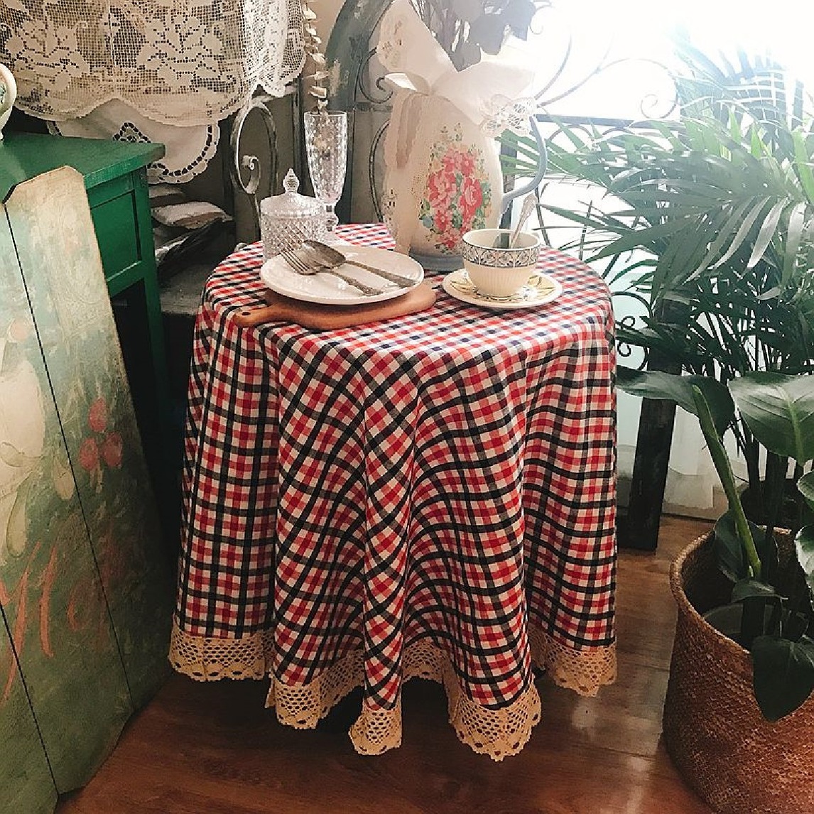 洛丽塔法式乡村田园纯棉格子布蕾丝圆桌布茶几布台布花园装饰餐布,格子元素的经久不衰是其他元素不可以比的。