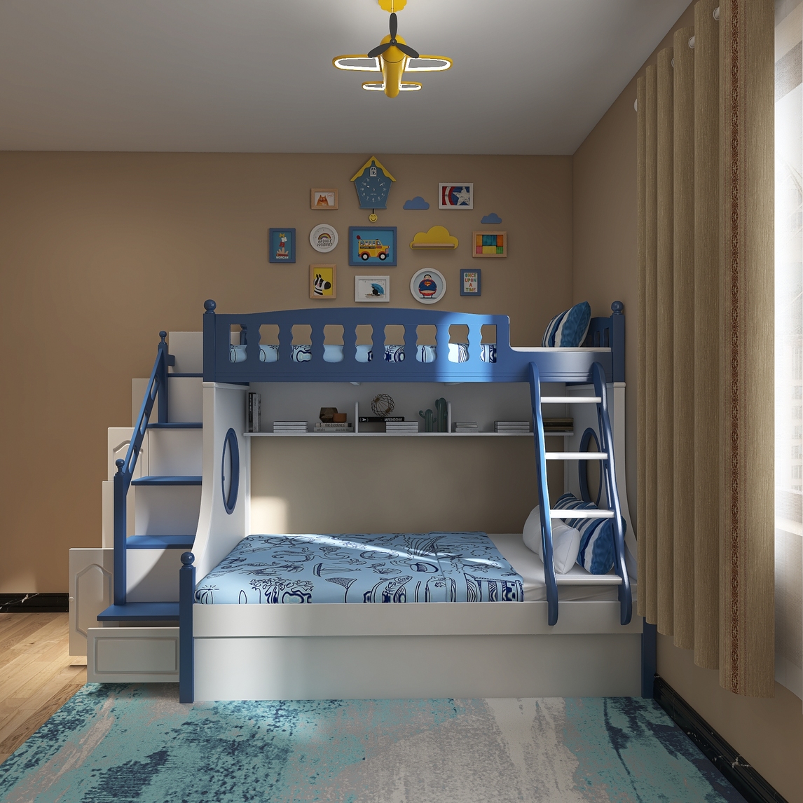 大海的存在,也许是很多人心中梦想的地方,深沉而浪漫,应运而生的地中海风格也颇受小孩子的喜爱,双层儿童床,整体设计充满地中海的个性,会让孩子爱上睡觉哦。