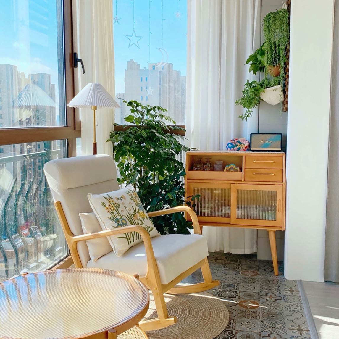 hi~大家早上好呀,今天来和大家分享下我新折腾的阳台休闲区~ 新购置了一个樱桃木餐边柜当作阳台的水吧,桌面宽度可以放煮茶器,下面开放格放常用的杯子和杯垫,抽屉放各种茶包,下面搭配的长虹玻璃移门和我的阳...展开