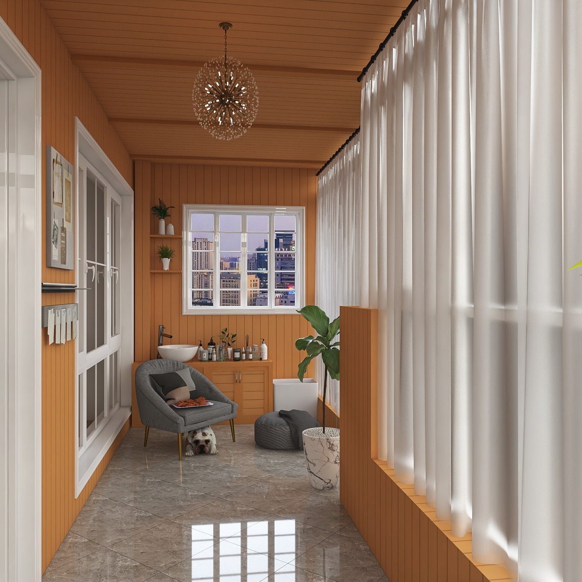 高层景观阳台,业主希望做个收纳功能的阳台,打造阳台收纳柜与拖把池,和家里整体装修风格相搭配,整个呈现出田园风的阳台。阳台是半开放式,一整天忙碌下来,傍晚时分,坐在阳台可以清理一天的思绪。