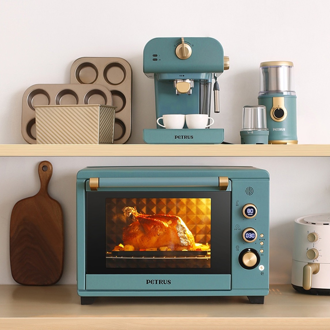 喜欢这种迷你小巧,又带着复古风的小电器,冬天烤箱很实用,还有咖啡机和料理机,同样的配色真的是绝了,风景线啊~