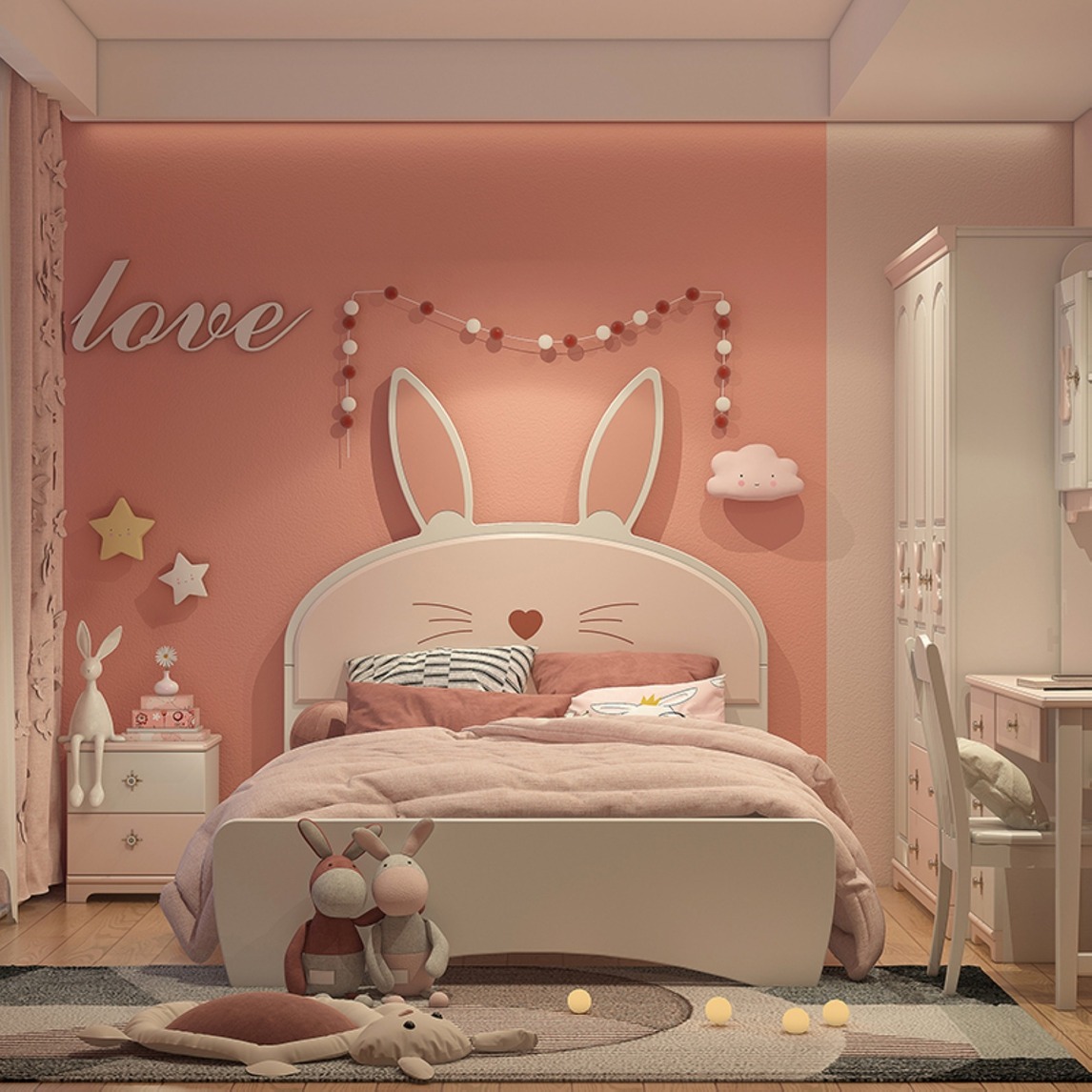 粉色兔子装饰,新潮设计,童趣的设计元素,填补童年那纯真的气氛。颜值与萌趣相结合,装点一室的好心情。圆润打磨,无棱角防撞,保护孩子。