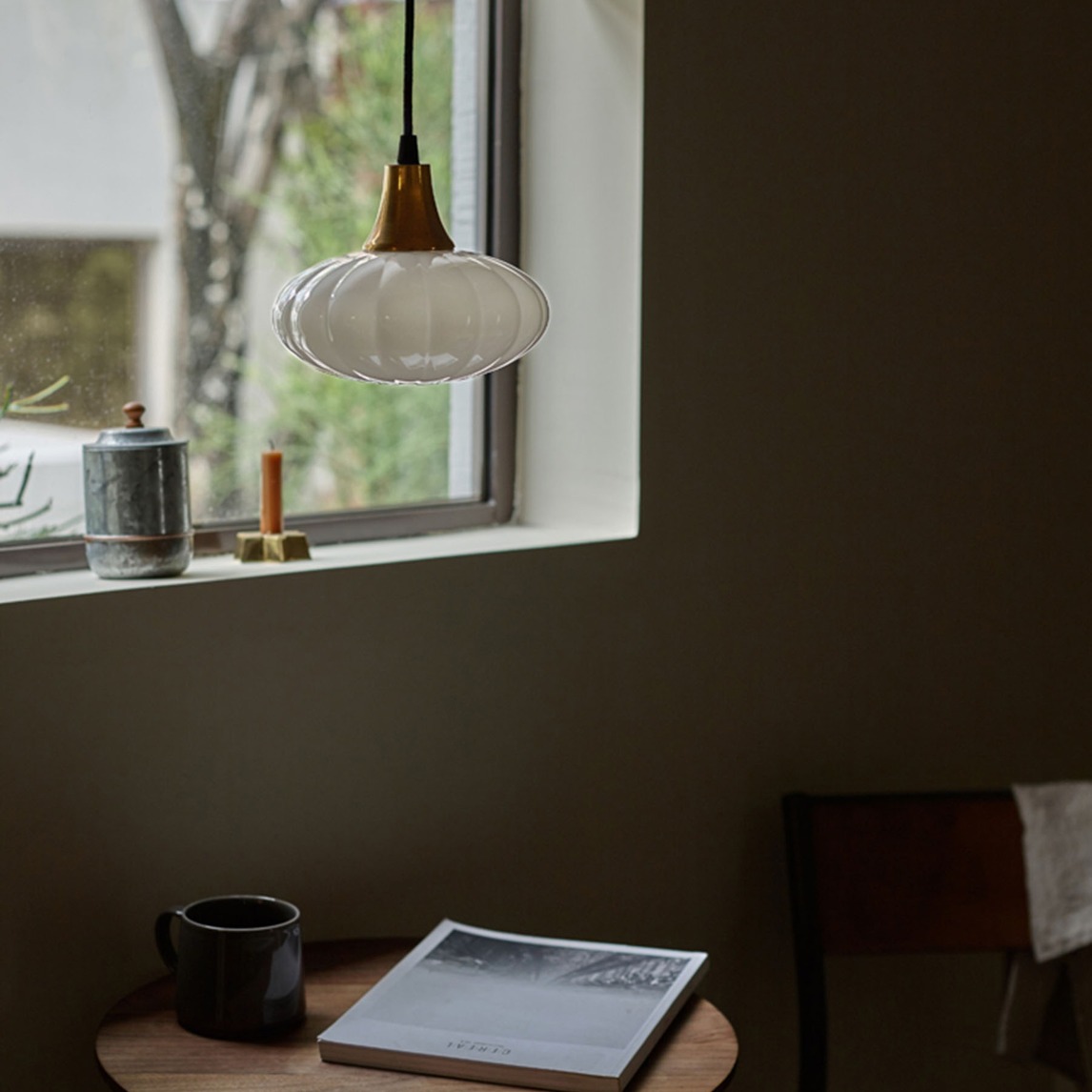 貌美的小南瓜灯,柔和温暖的光线营造出客厅一角舒适的氛围。而黄铜材质的细节点缀,让空间看起来格外美好。