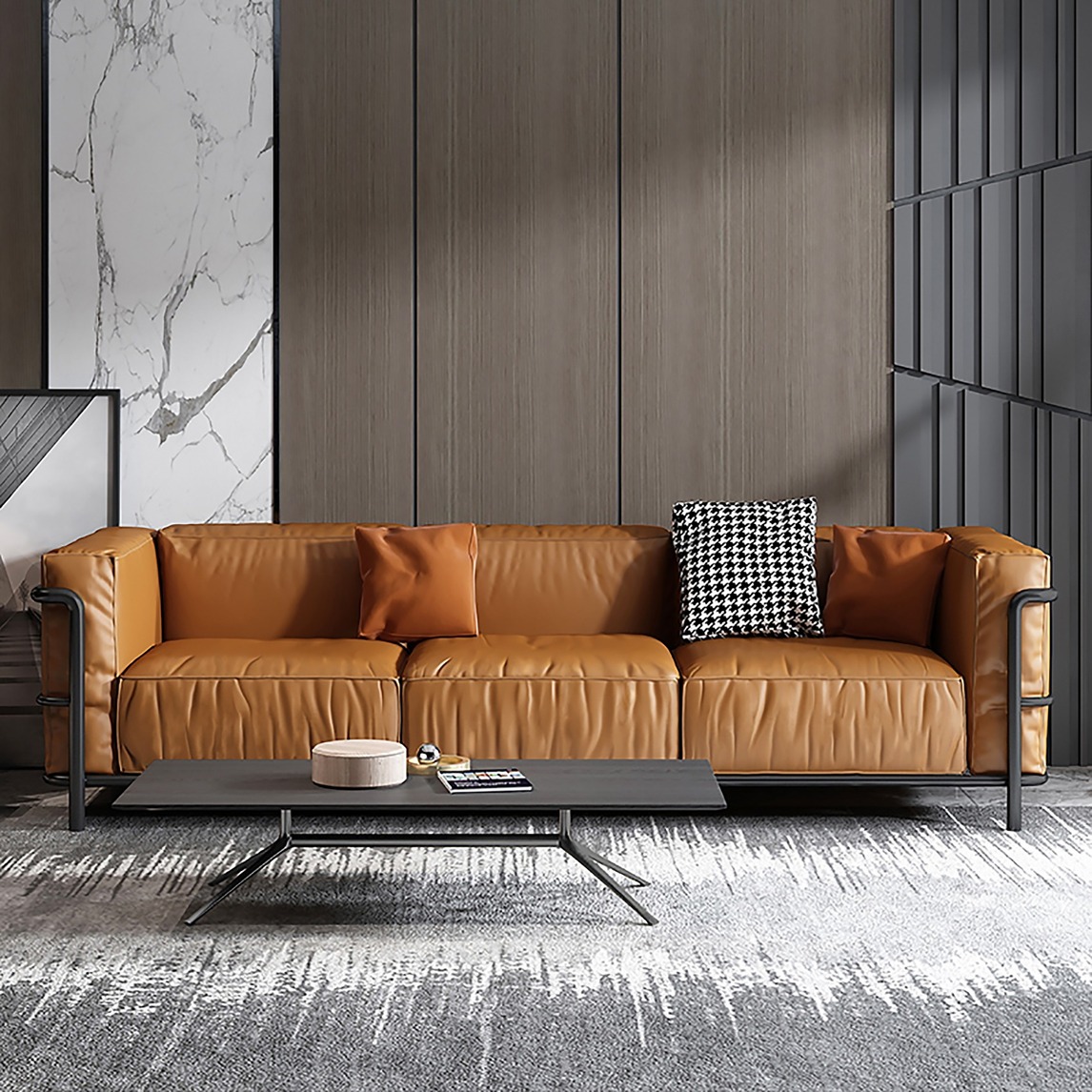 此款沙发采用真皮头层牛皮,真材实料,毛孔纹理清晰,触感细腻光滑;整体框架选用俄罗斯松木打造,承重力好,不易变形,更加经久耐用;扶手的细节处配有复古柳钉设计,增强了整体的美式风情。