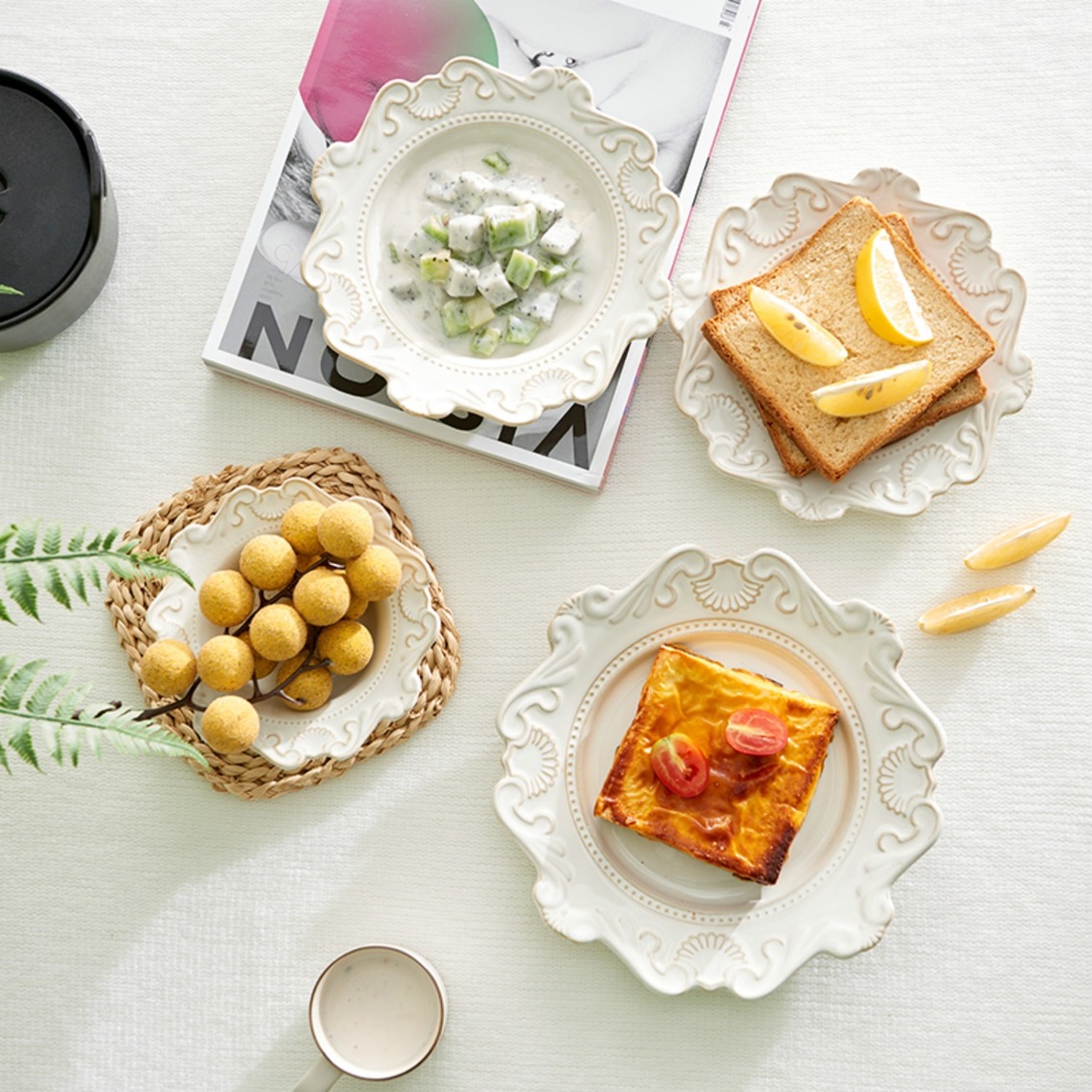 洛可可风格浮雕餐具,这种风格的产品带有浓重的复古情怀,复古是而今美食拍照很推崇的一种风格,随便一摆都能拍出别具一格的美感。