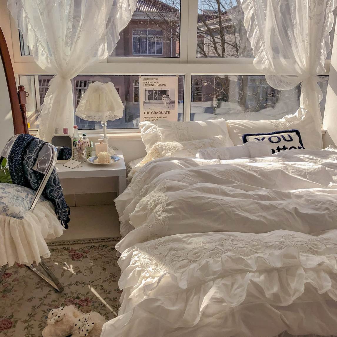 超美呀~是公主的卧室 女孩子真的一定要有一套纯白色的床品,好仙气 整个卧室会有一种不食人间烟火的感觉 简直就是神仙姐姐的房间啦~