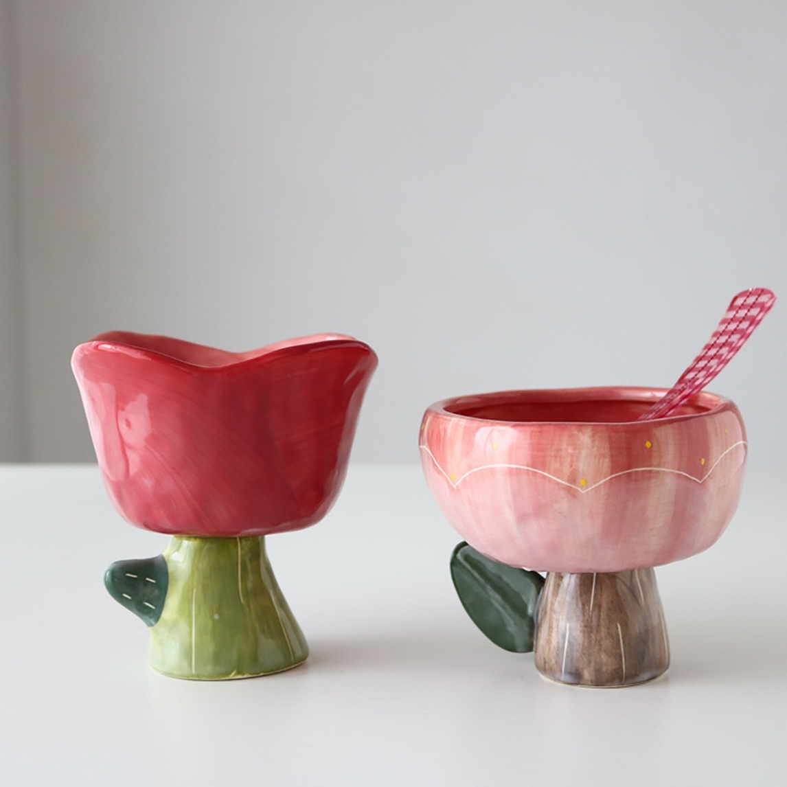 这个别致造型的水杯,相信没有人看了会不喜欢的吧,手捏不规则手绘花朵形态的茶水杯,红色和绿色的完美结合,让你喝水心情变好。