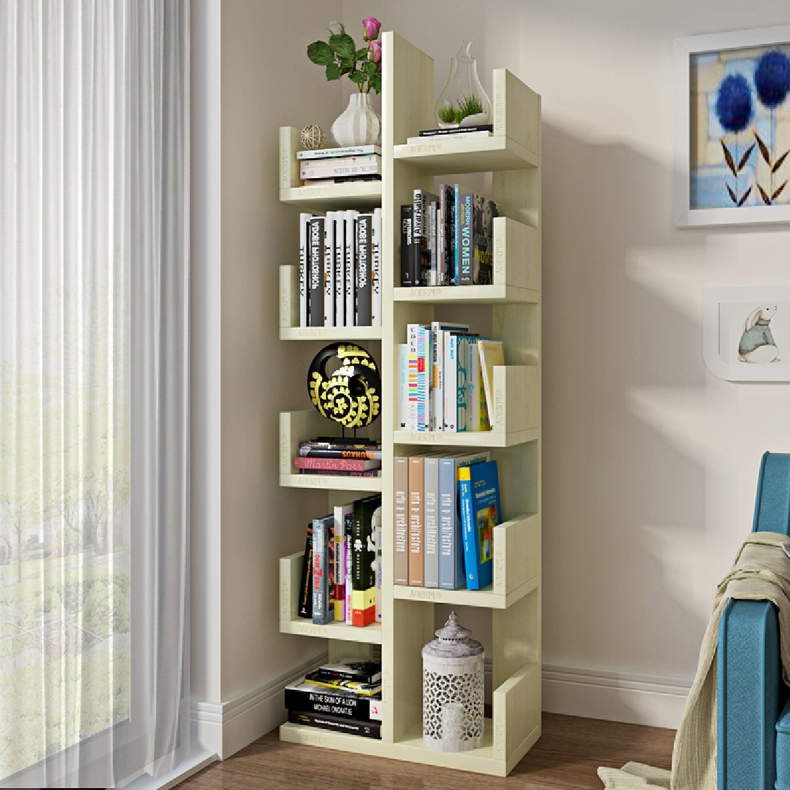 书架落地创意树形学生书柜简约现代儿童组装收纳架客厅简易置物架 超强收纳 ,超强承重, 超大空间, 一架多能。