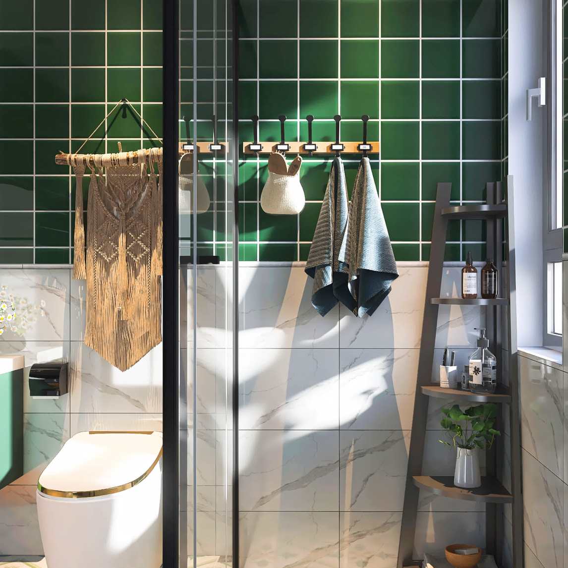 法式轻奢风浴室舒适+颜值+实用才是王道 今天分享一个法式轻奢风的浴室,对于我来说,颜值一直是追求的,但是同时舒适和实用也很重要 进门就是干区的浴室,与墙砖同色系的墨绿色好看又耐脏,一体陶瓷盆清洗起来也...展开