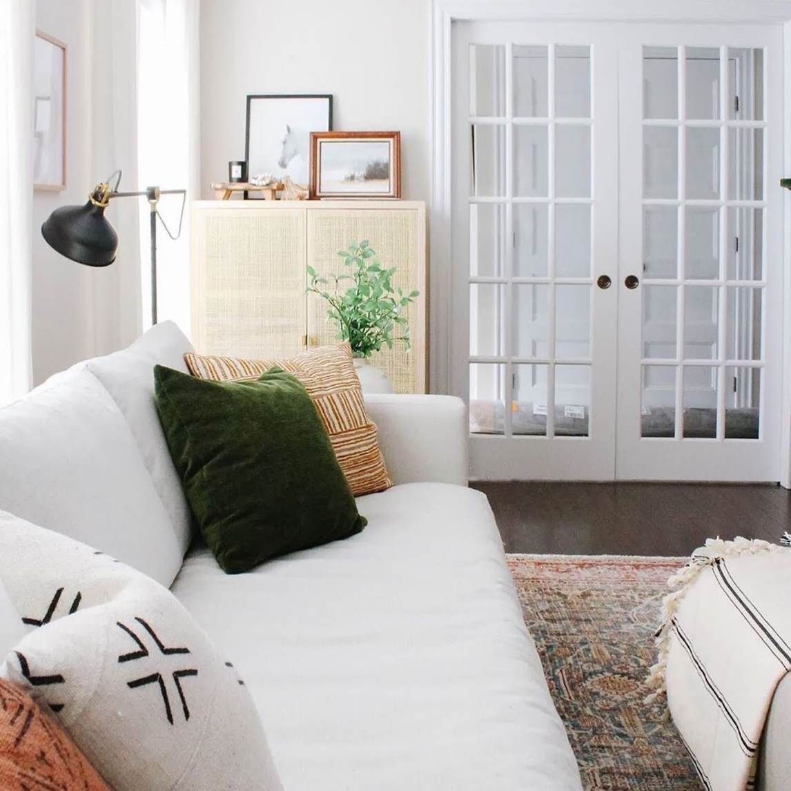 白色家具搭配黑色铁艺门,这样法式简约慵懒的风格非常高级。依旧是着重软装的一个示例,床品、摆设和绿植的选择都透露着主人的品味。