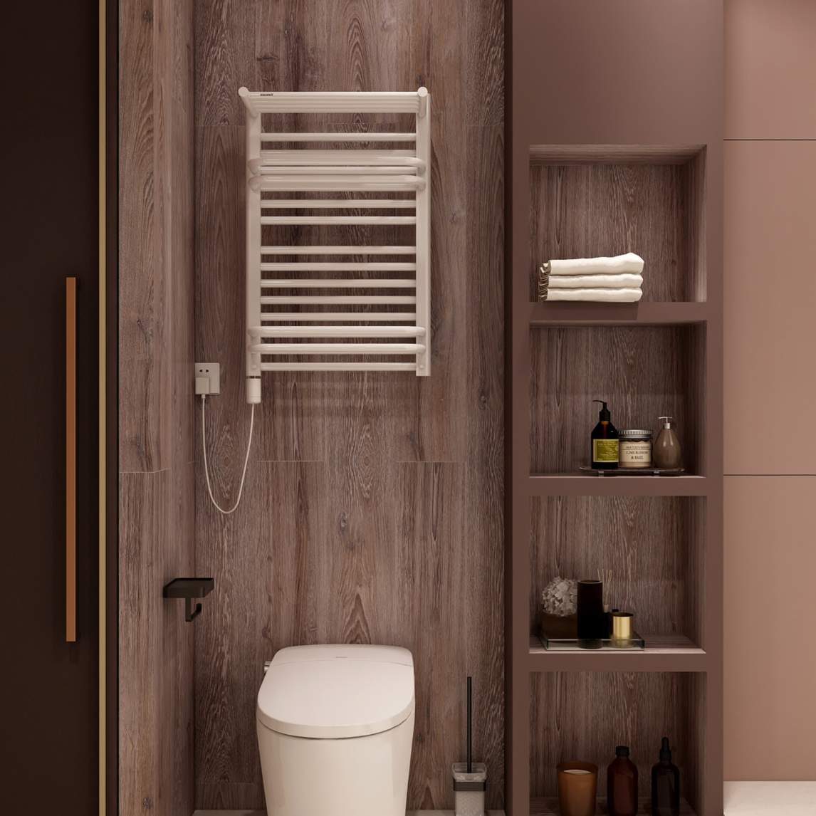 梦想的轻奢浴室,智能马桶+浴缸猛待一小时 高级轻奢风的烟粉色浴室,又有超大的亚克力浴缸,又做了一个半隔断的淋浴区,星月智能马桶和电热毛巾架搭配组合,旁边做了一个棕木色的置物架, -洗漱区做了一个异形的...展开