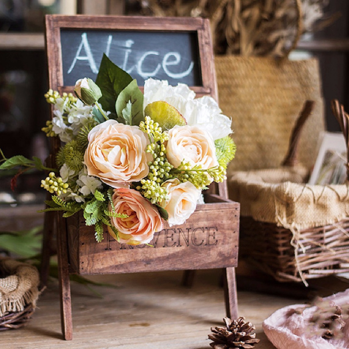 实木黑板留言花架,粗放做旧处理,古香古色的感觉,很有复古文艺范。花架精致小巧,可折叠,收纳方便,而且也不占地方。