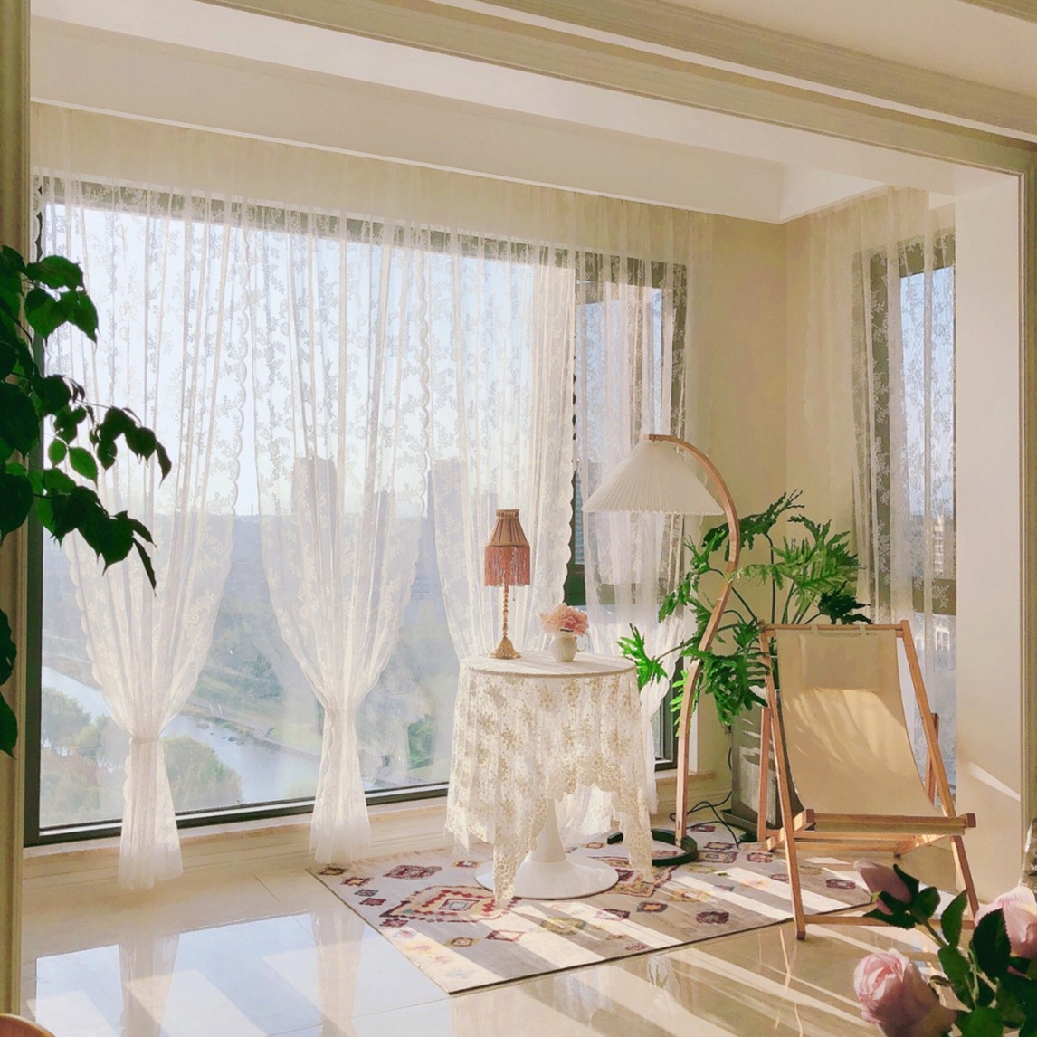 从客厅一眼望去就是阳台,这样显得家里更宽敞。 在阳台上摆放一张郁金香圆桌,一把休闲椅,还有时尚的落地灯和龟背叶盆栽,有诗意的休闲生活~ 窗帘用的是法式蕾丝窗帘,非常的有韵味。 简约大吊灯,也是非常美,...展开