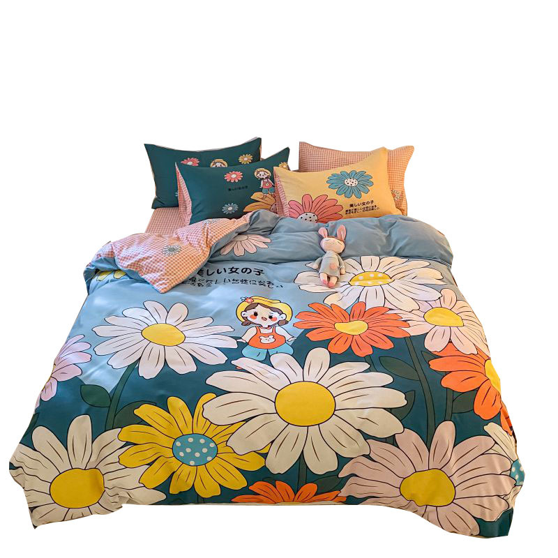 鲜艳的颜色和大大的花朵,看着就好治愈,这样款式的四件套孩子们都好喜欢,磨毛材质,不起球不掉色,可以裸睡。