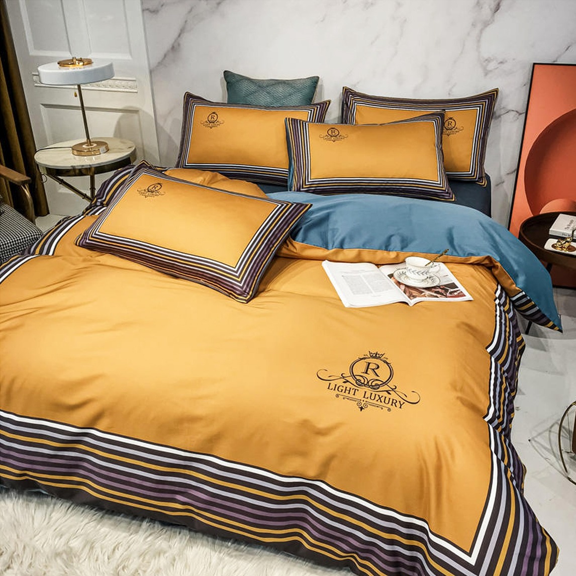 将高贵的气质,与轻奢的质感,很好的融合到一起的卧室设计,床品选用时尚大牌的配色,结合精致的字母刺绣,格调炸裂。