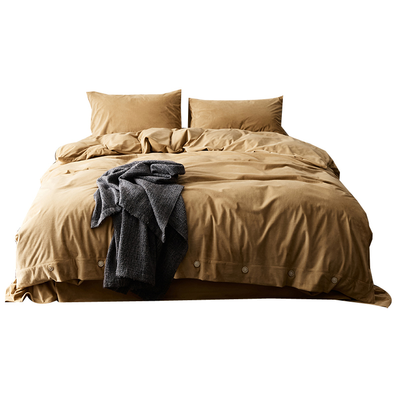 法式水晶吊灯,玻璃和金色的搭配,轻奢感十足。 加绒四件套,保暖舒适,秋冬季节的睡眠好伴侣。 针织盖毯,增加一丝暖意。