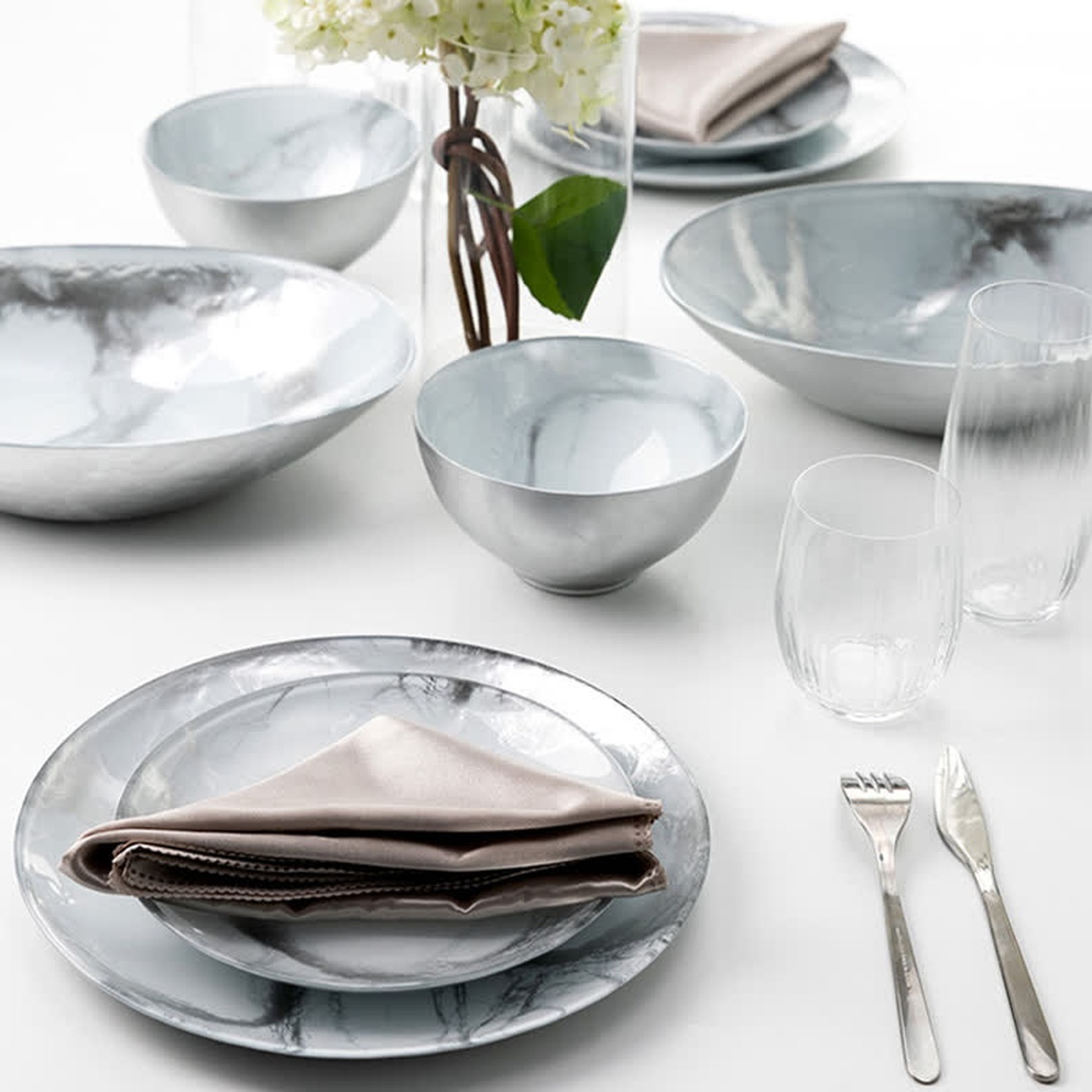 这款欧式西餐盘,是由纯手工精心打造的,采用了精湛的手绘工艺来制作,表面设计了加拿大冰川纹理,自然的裂痕和纯净白搭配渐变银灰,遮挡了玻璃通透的单调感,使整体更富有个性,打造了简约时尚的北欧风,让你在享受...展开