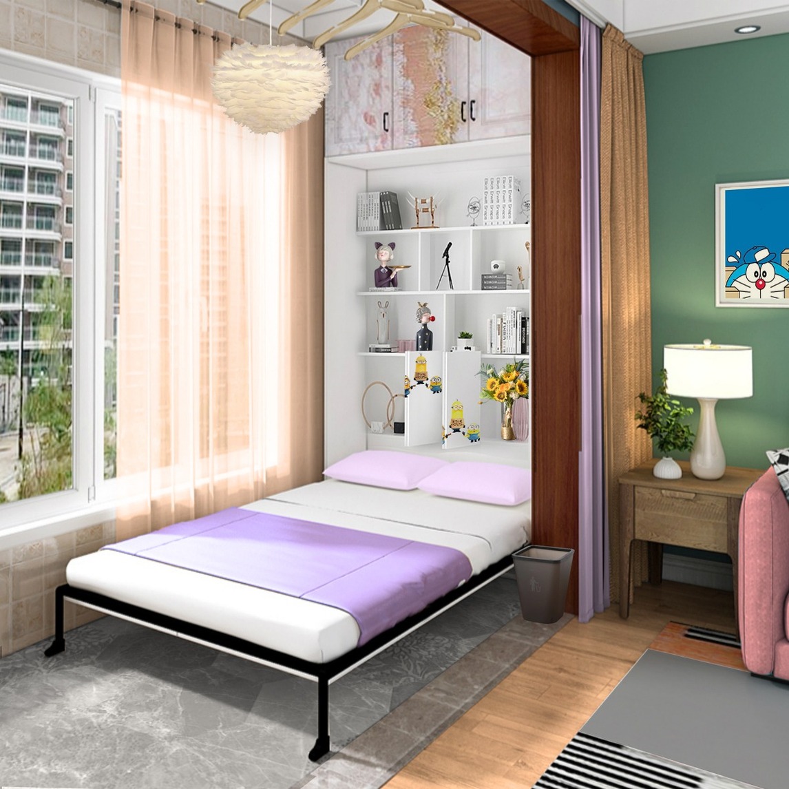 这款阳台客厅隐形床简直绝了,小小的阳台空间也能布置成一片小天地,不需要休息的时候也可以把它收起来,搭配一些柜体就具有很好的收纳效果哦,外观也非常的简洁大气。享受个性化家居,释放更多空间,让家里更宽敞。