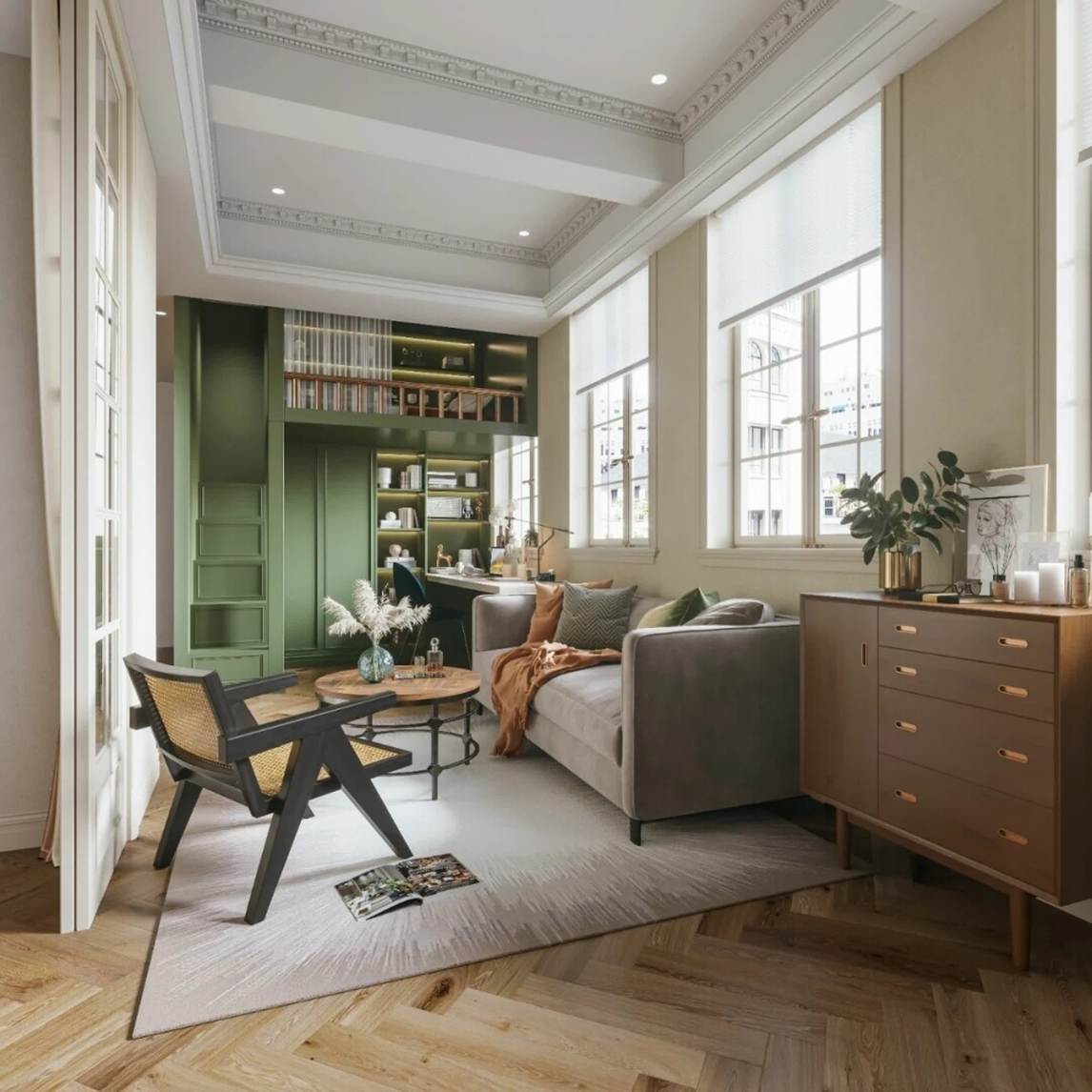 复古绿色真的太美了,搭配简约的白色,真的超级精致 这样的法式复古风,你爱了吗? 法式复古风客厅设计,真的超级精致