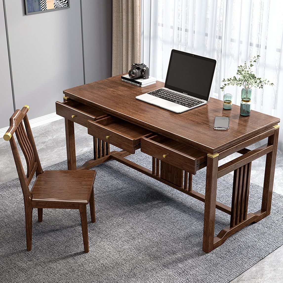 新中式的书房,最具诗意的格调设计。深色调的实木书桌,化繁为简的造型,融入中式元素,将现代美学和东方神韵完美结合,为空间带来宁静祥和的氛围。