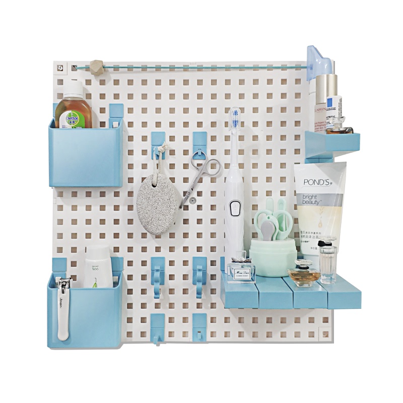 洞洞板的优点是能自己布置挂杆和置物板的位置,每一个孔位都能插上配套的挂杆或隔板,收纳功能多种多样异常强大。边上搭配上几本装饰书摆件,让提升家居文艺范。
