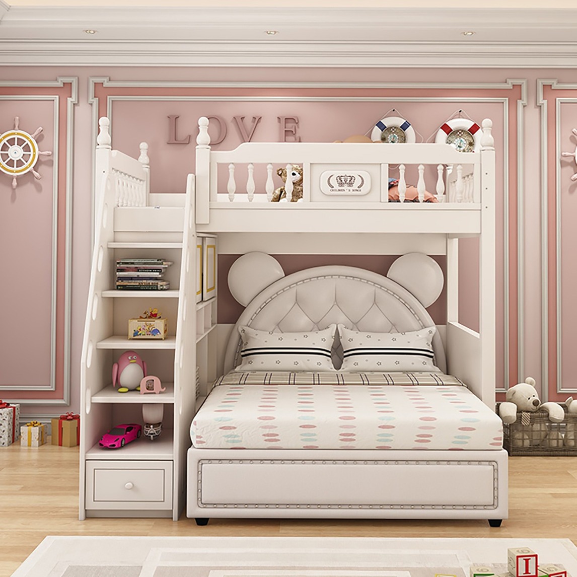 这个子母床太值得拥有了粉嫩嫩的色调,让卧室带有少女心感,整体设计简约不简单,既是楼梯又是多功能置物架,能放置孩子的玩具与书籍,也能让孩子上下床更方便。