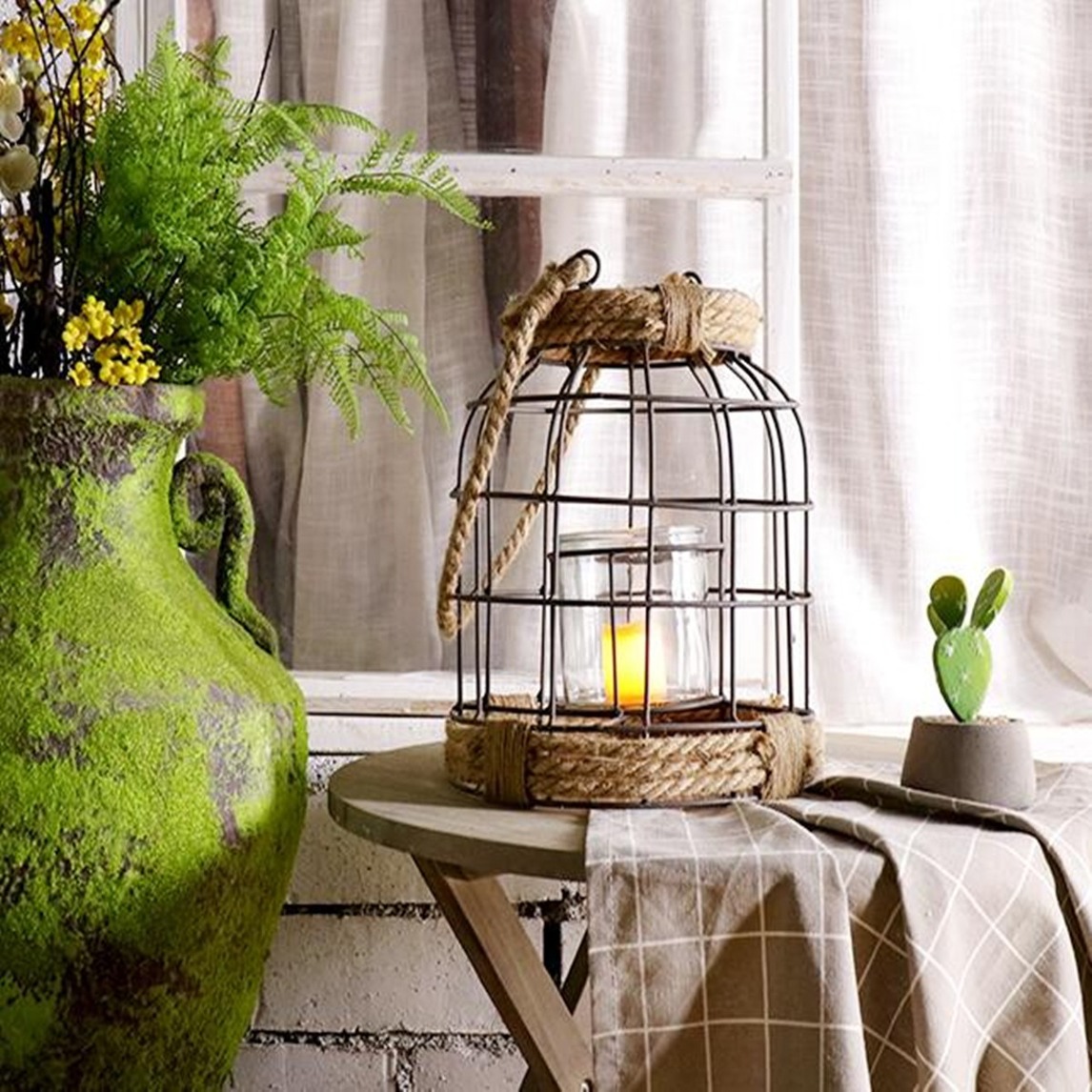 创意复古铁艺烛台风灯,采用原生态的麻绳与玻璃瓶结合,使产品环保耐用,又兼具纯美恬静的自然风采。纯手工打造,环保耐用,摆放任意场合都那么自然。