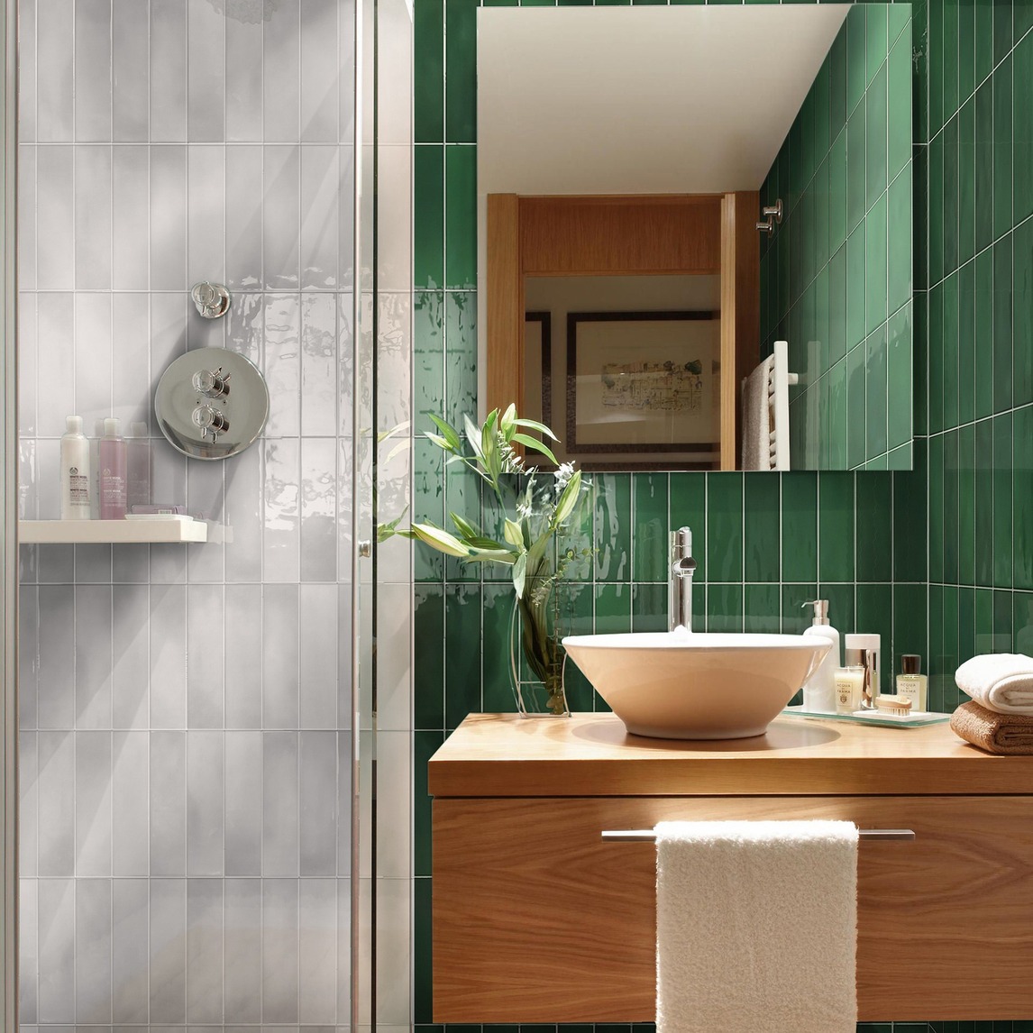 不同于以往一贯的小白砖风格,采用了松绿色窑变手工砖和白色窑变手工砖,颜色过渡自然,让人眼前一亮,印象深刻,却不突兀,一切显得都刚刚好。