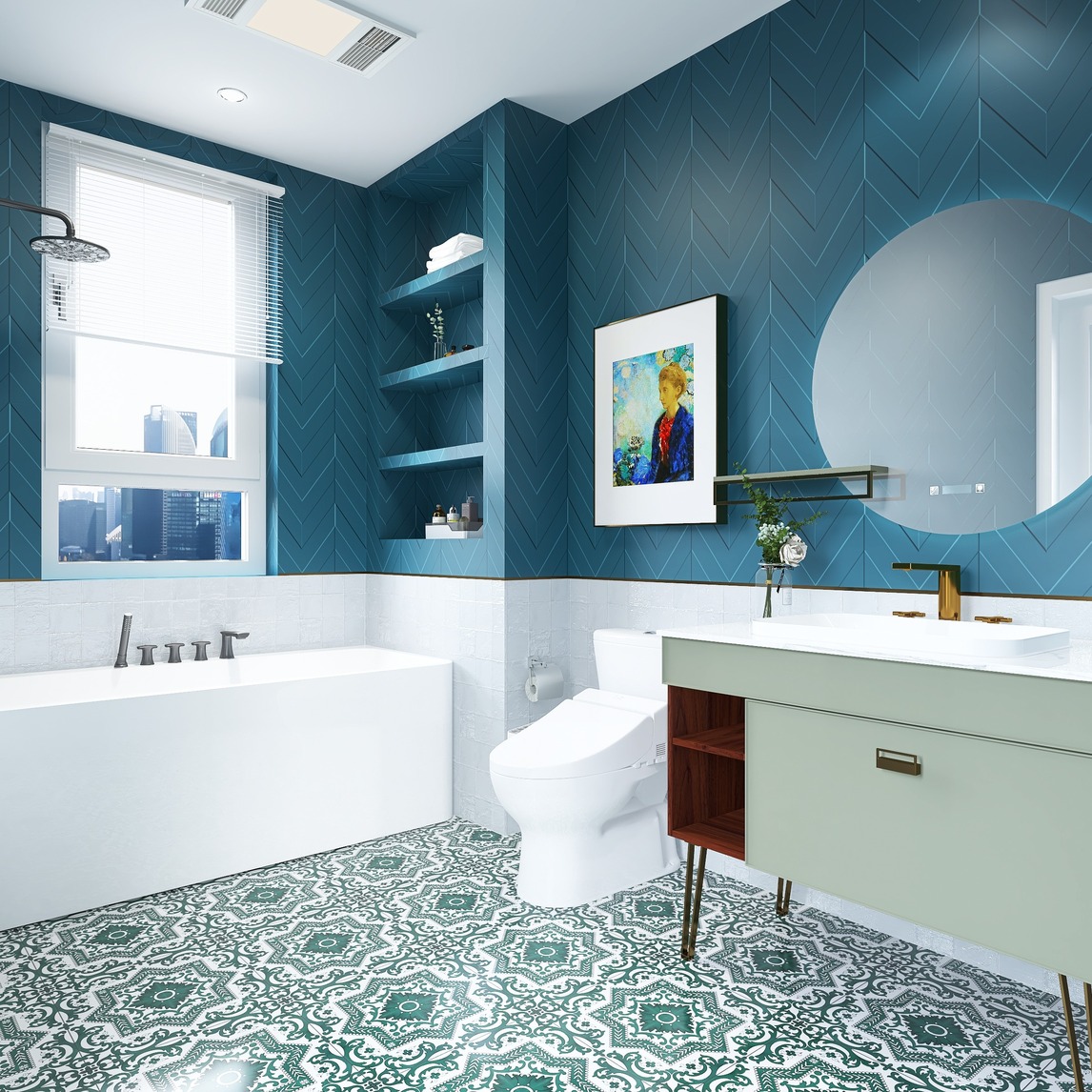 浴室是每天必使用得空间,顶面的局部照明,墙地面的个性瓷砖,搭配上经典的卫浴,既提高主人的品味,又提升主人的生活品质。整体营造浴室复古风。
