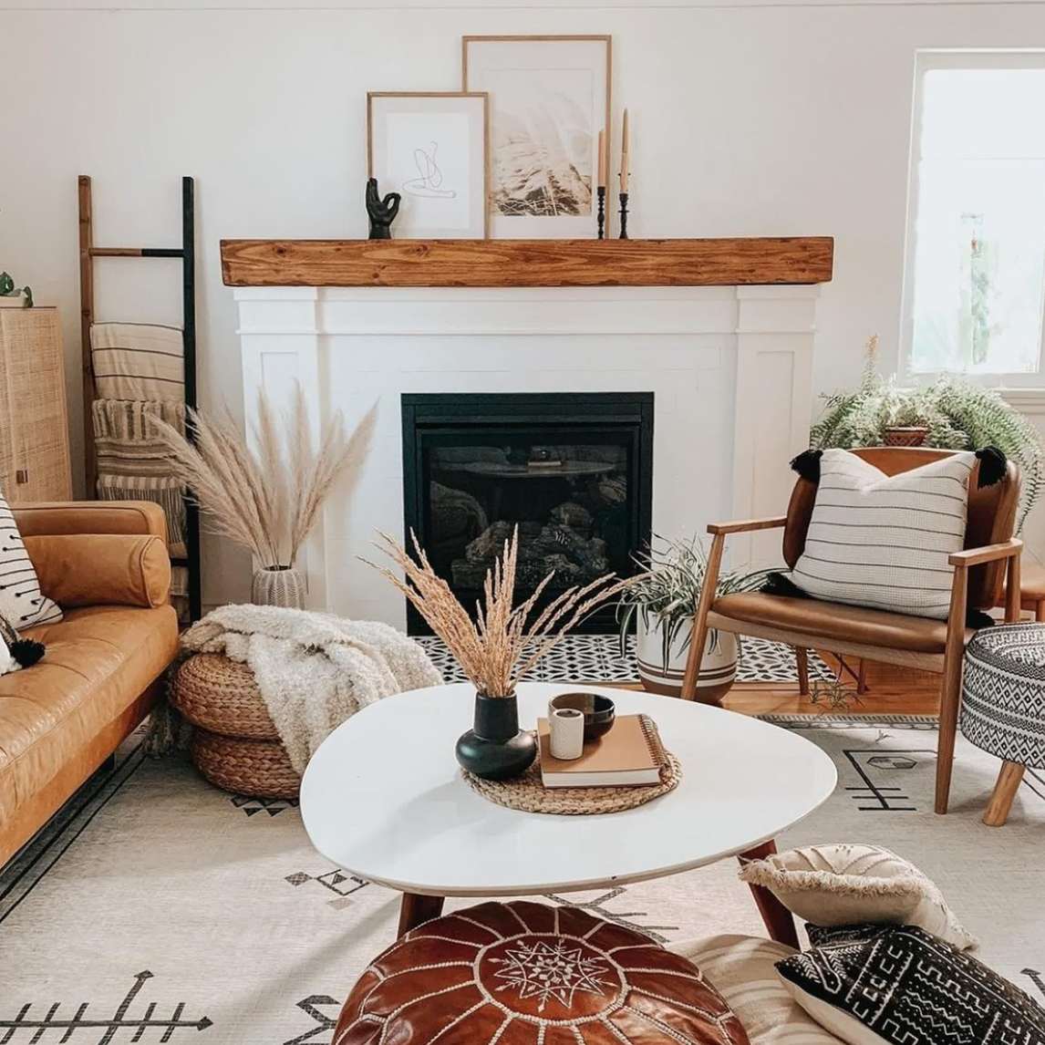 把热烈的摩洛哥元素应用的如此清新,,富有肌理感的纯白色与民族风的图案搭配起来,,明亮干净又不失变化。客厅的羊皮坐墩与土橘色沙发搭配,藤编的灯具和蒲团,风格统一,满满的民族气息。