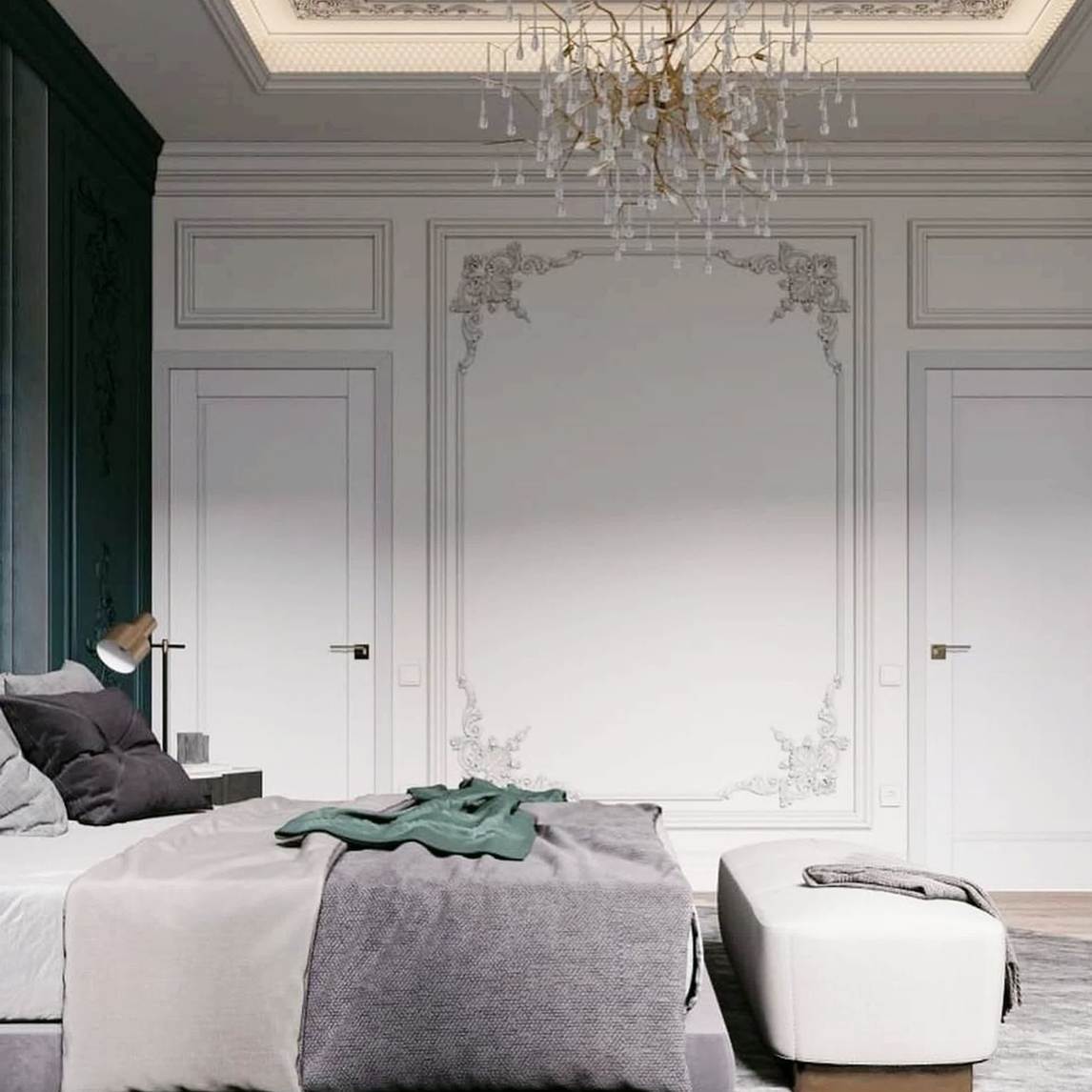法式轻奢卧室,让人耳目一新的蓝绿色装修 蓝绿色的床头背景墙搭配法式雕花看上去细腻又精致,把法式的委婉和淡雅表达得淋漓尽致~