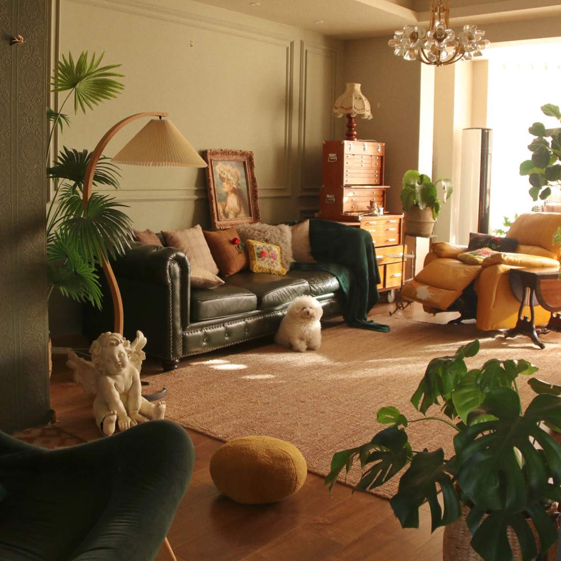 客厅软装分享|复古装修案例|软装好物 我从不回家,而是在森林里种下一张沙发。 生活方式家居装修租房改造家居好物绿植花艺