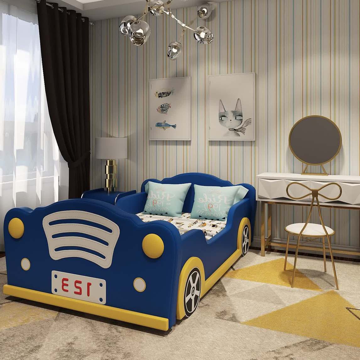 老爷车儿童床,童趣益智,外观正正方方的两侧都有加高护栏,内部采用软垫材料,棱角圆弧处理表面包有海绵皮革,使得整个床的实际占用面积不大,还能防翻睡,磕碰更加安全实用,非常适合小户型屋主的选择。 小...展开