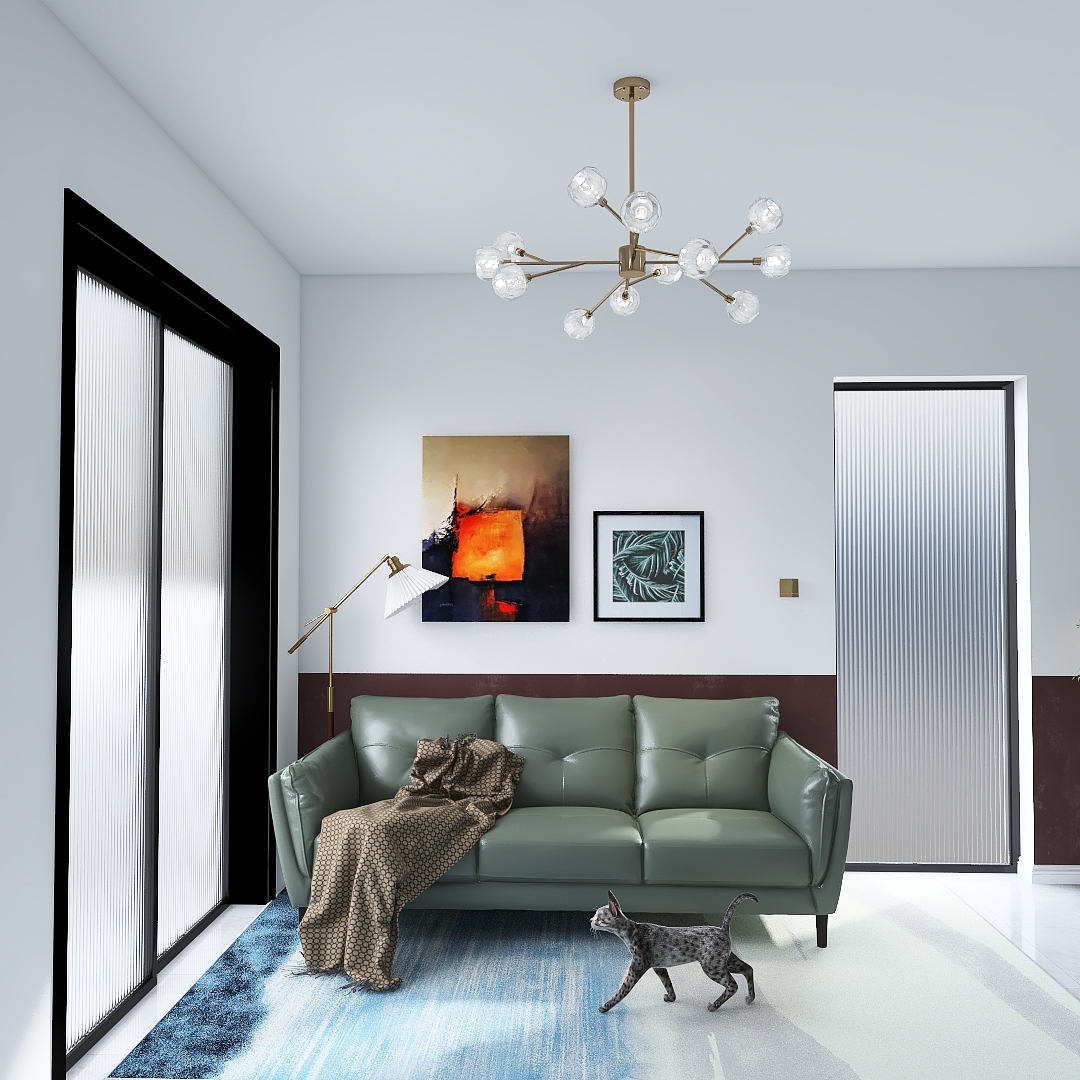 运用装饰墙的图案与家具打造美式风格。灰绿色的包裹着空间,带来舒缓治愈的效果。绛紫的点缀拉开层次。时尚之中充满着自然气息。