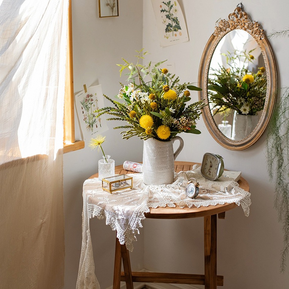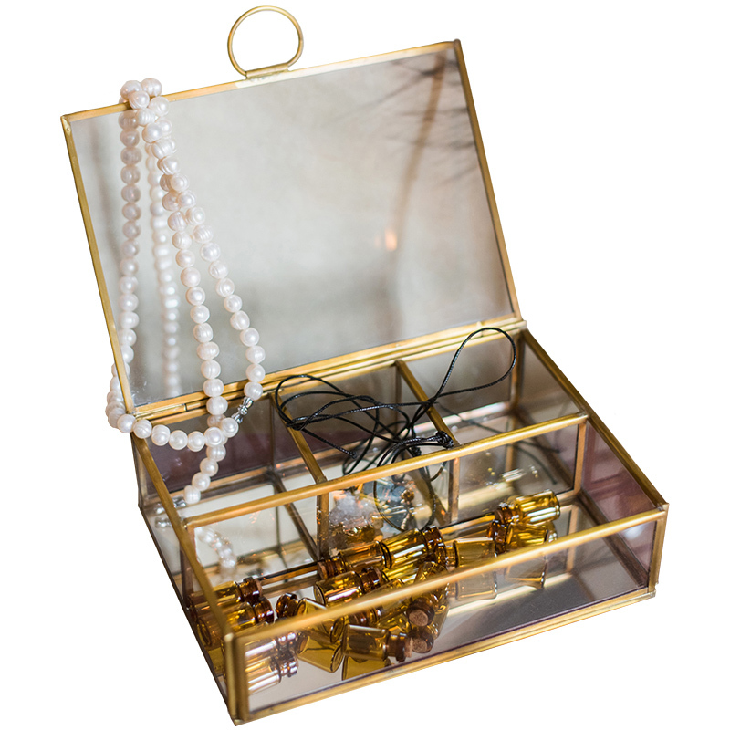 法式古典雕花的镜子装饰感强,而从印度进口的复古纯铜饰品收纳盒凸显了贵族气质,搭配一束手工西式花艺,打造出有历史故事情感的空间环境。