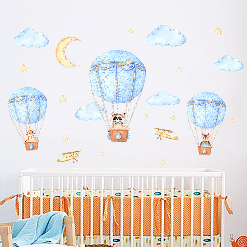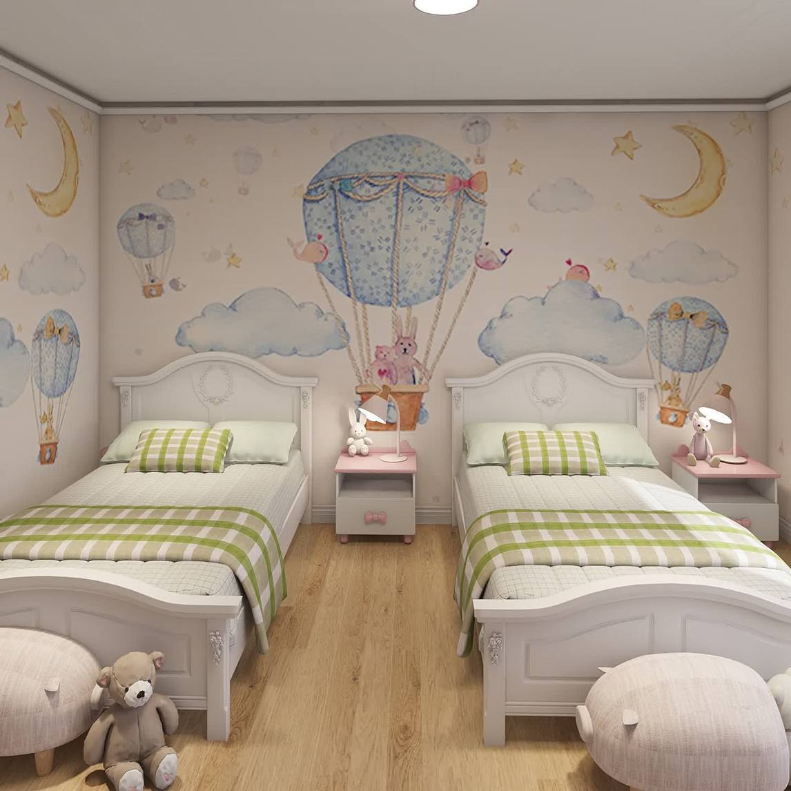【与你约定,搭乘午夜的热气球,穿越云层与星海,看鲸鱼翱翔于天际】这是有故事的无缝墙布,与宝贝靠在小床上一起看故事书,一起成长。