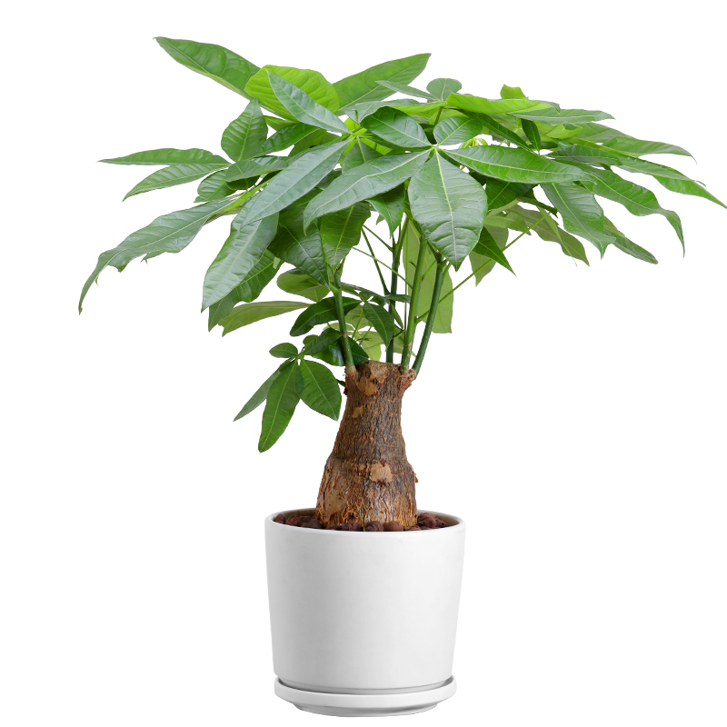 粗桩桌面发财树,叶子翠绿,形态优美迷人,观赏性极高,而且极易养护。它还具有很好的寓意,给家里摆上一盆,财运滚滚来。