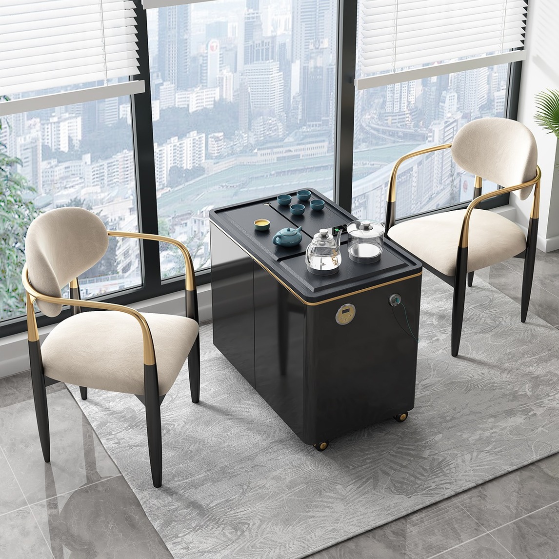 想打造阳台休闲区其实很简单,一张轻奢方便的功夫茶桌,自带滚轮设计,移动方便,不管是在阳台还是在客厅,都能为你打造一个临时茶室。全自动茶炉设计,自动上水烧水,泡茶更方便。