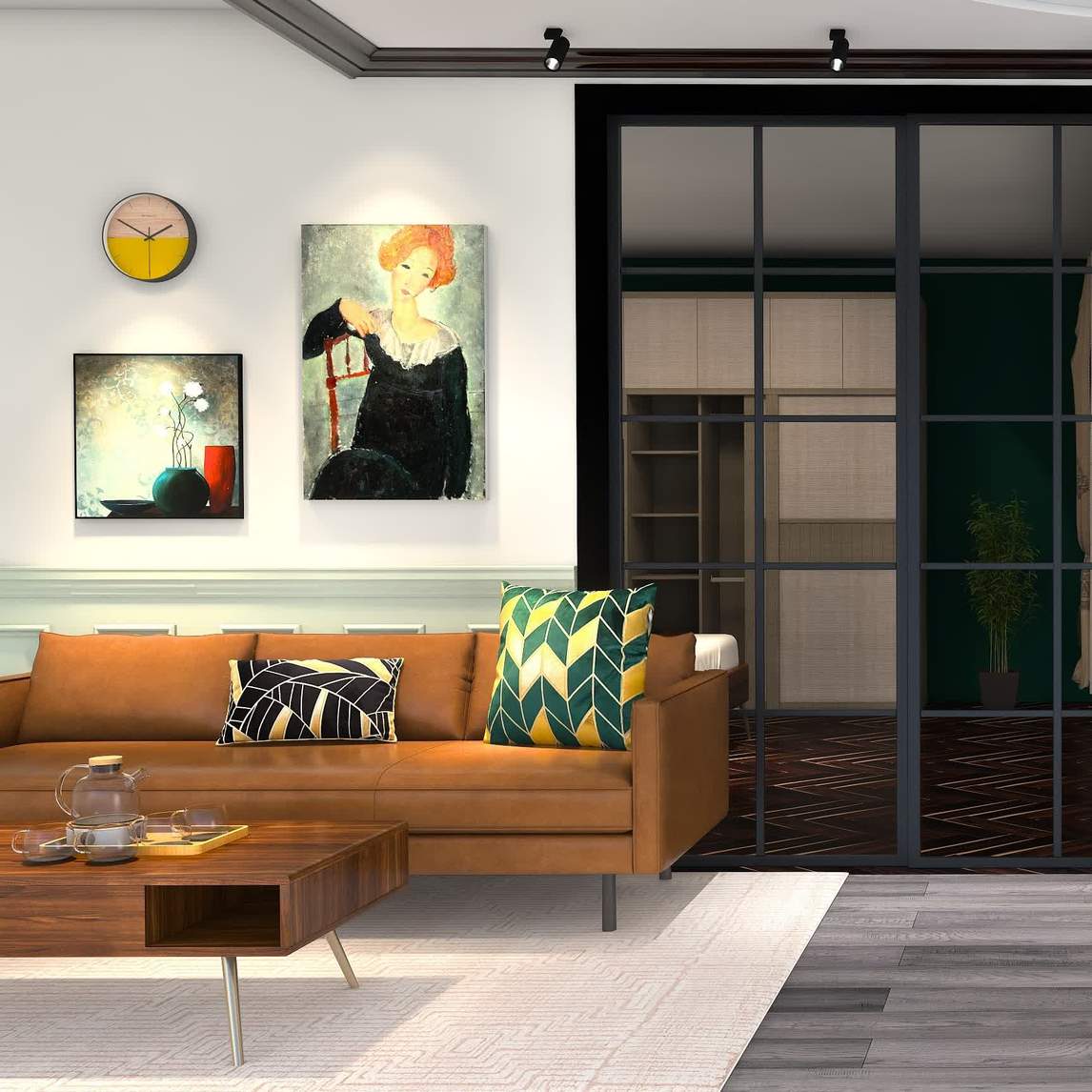 复古风客厅,灵感不拘泥于形式 设计师的家也是他的小型工作室,工业风大开间风格的工作室里,用玻璃门隔断做了卧室空间,四等分之后的区域除了卧室,还有很大的厨房,餐厅,以及客厅,灵感不拘泥于形式。