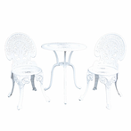 深咖色的实木拼花地板和咖啡色的墙面壁纸深沉冷静,突显出了雍容华贵的气质。地毯和窗帘,干净明亮,起到了很好的中和作用。白色桌椅的镂空设计凸显出浓郁的欧式风情,与仰天整体的气质如出一辙。