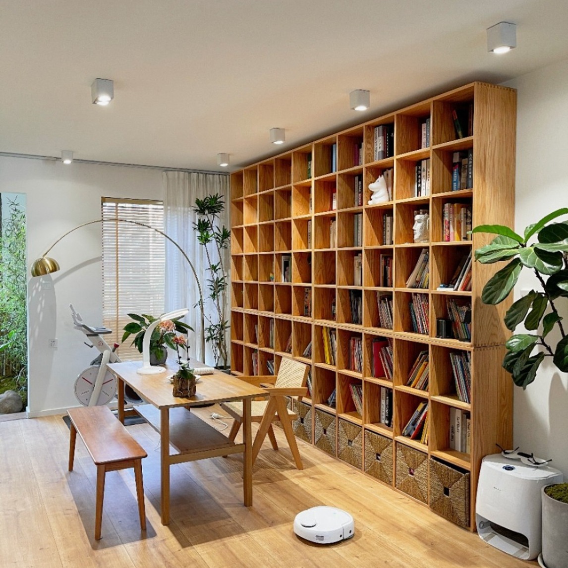 组合书柜,一面墙都是书籍,每天都能沐浴书海,享受阅读的快乐。 网红落地灯,金色点缀,颜值满分。 云鲸扫地机,让你彻底解放懒人的双手。